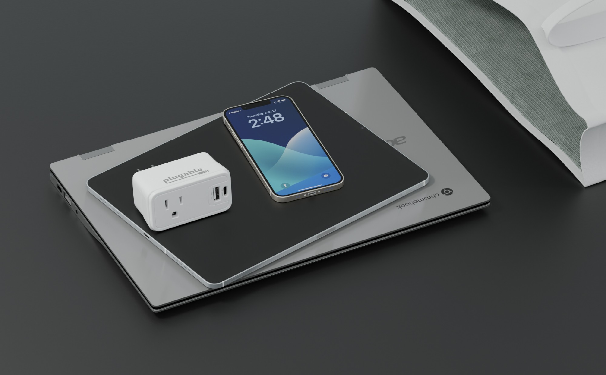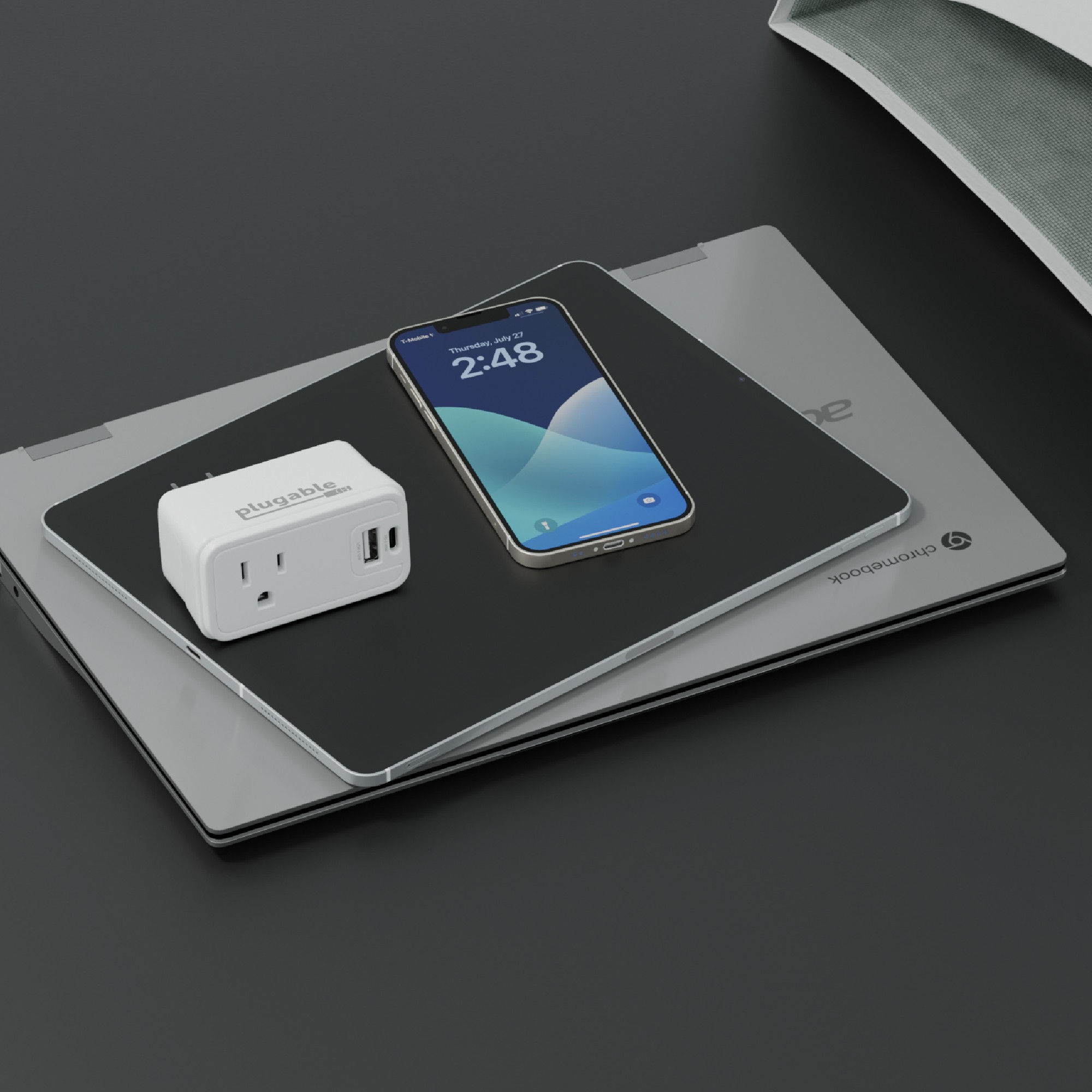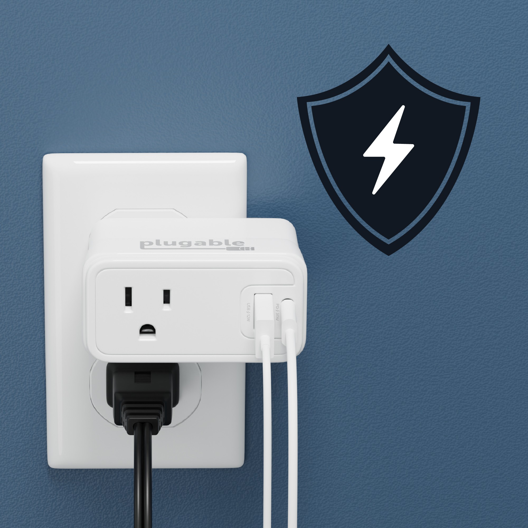 This outlet adapter with USB wall plug delivers a combined total of 32W of charging power to the USB ports. If using the USB-C port alone, get up to 30W—excellent for fast charging your phone. If you’re using both USB ports, the charger delivers 20W to the USB-C port, and 12W to the USB-A port.