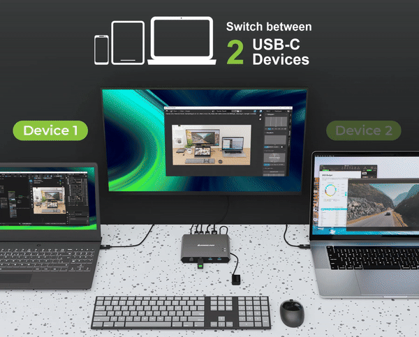 With its compact form factor and compatibility with Thunderbolt 3 / 4 devices, the USB-C DVM Switch is a desktop and mobile powerhouse, ready to increase your productivity at home, work or on-the-go. The USB-C KVM's small footprint ensures it takes up little space at your workstation while fitting conveniently into your travel bag.