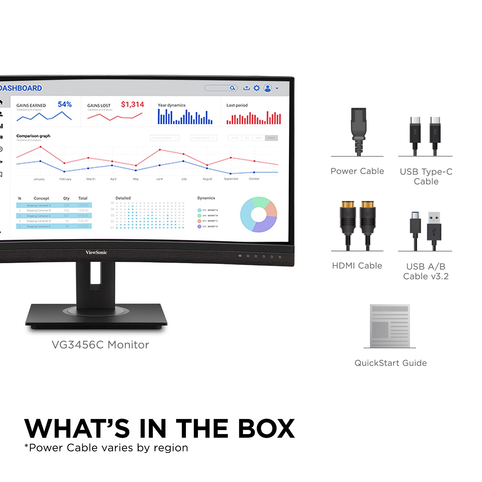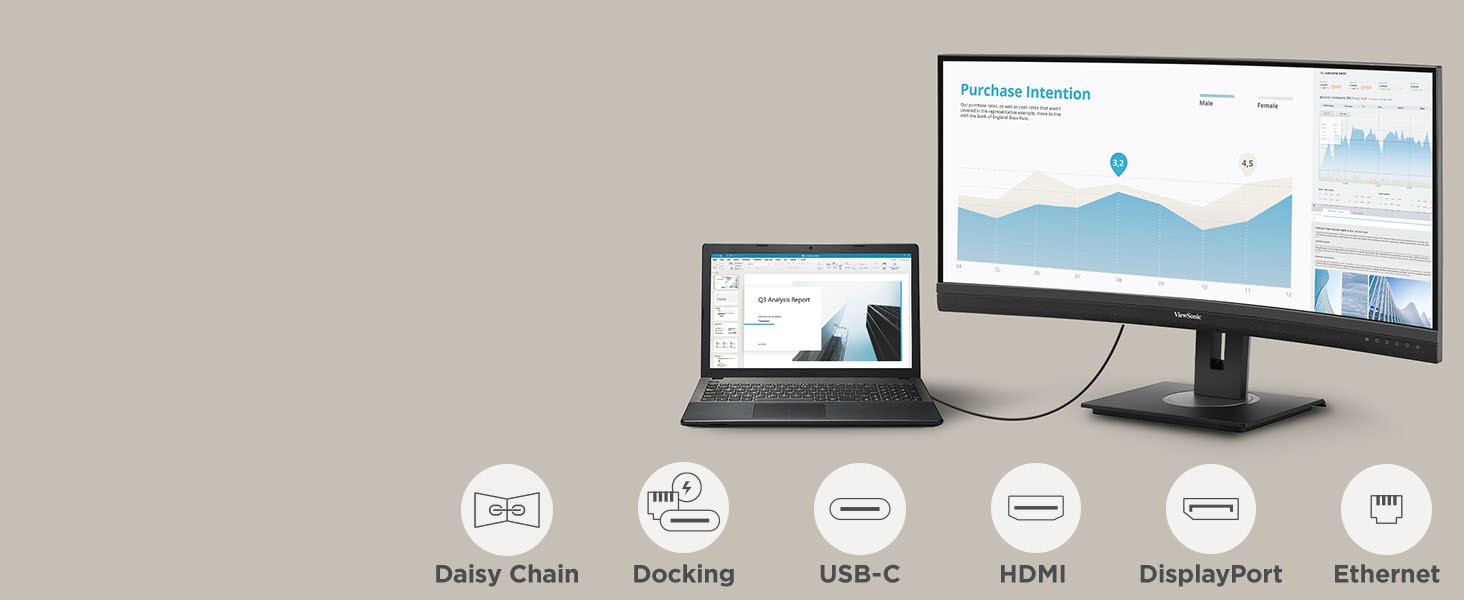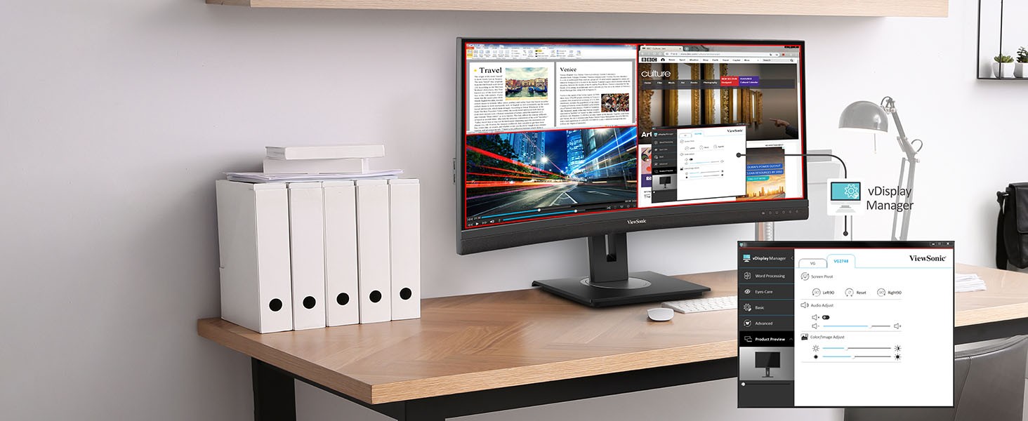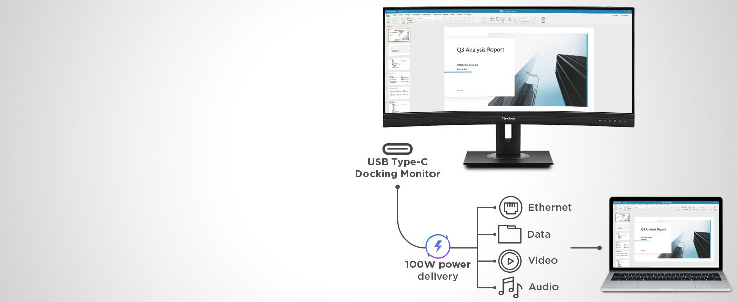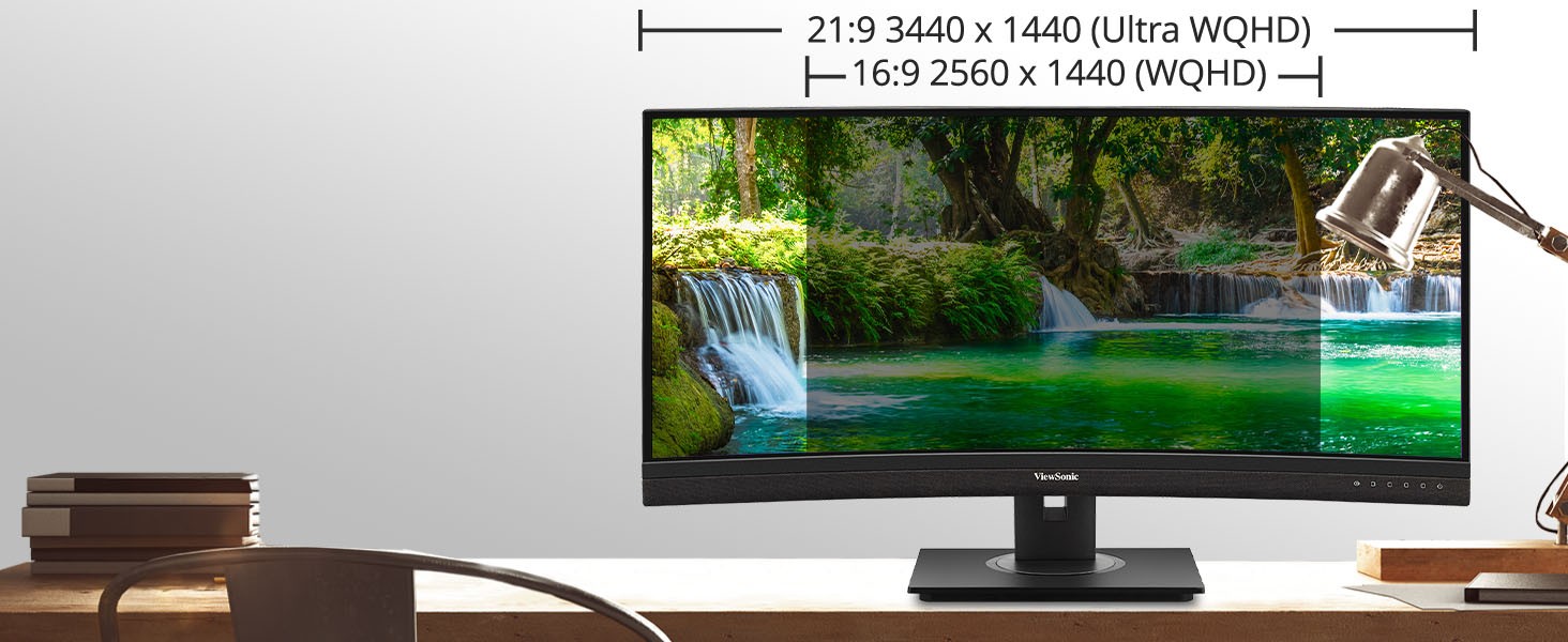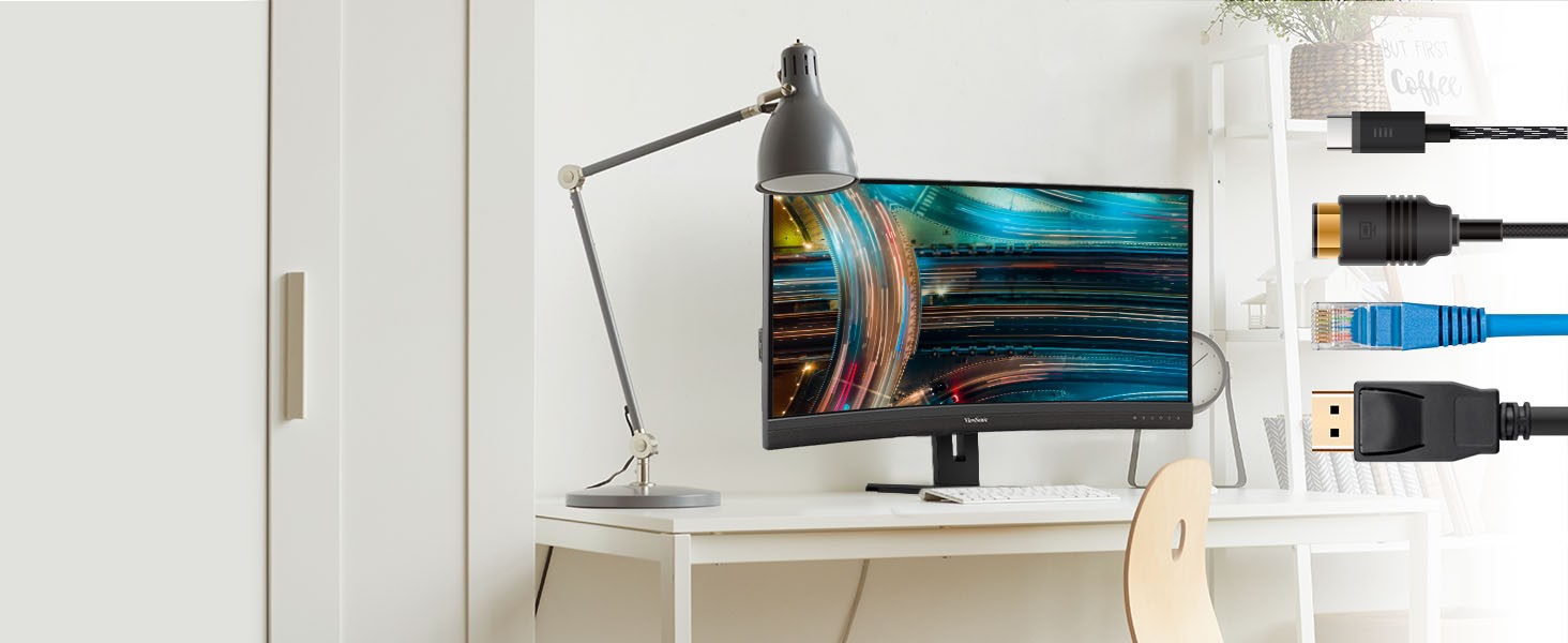 Featuring an immersive ultra-wide 34” curved screen and single-cable USB-C connectivity, the ViewSonic® VG3456C monitor is designed to boost productivity and streamline your workspace. With WQHD 3440 x 1440 resolution, the VG3456C delivers 2.4 times more pixels than standard Full HD monitors, giving you more detail for enhanced productivity. A 21:9 aspect ratio provides extra screen real estate so you can display more content. A 1500R curved screen creates a more immersive viewing experience by bringing the far edges of the monitor closer and within your natural field of view. Enjoy reliable network connectivity with the integrated Ethernet port while the latest USB Type-C connectivity provides up to 100W power delivery to your laptop. That’s not all, the integrated USB hub also provides single-cable simplicity for connecting and charging your peripherals and accessories.