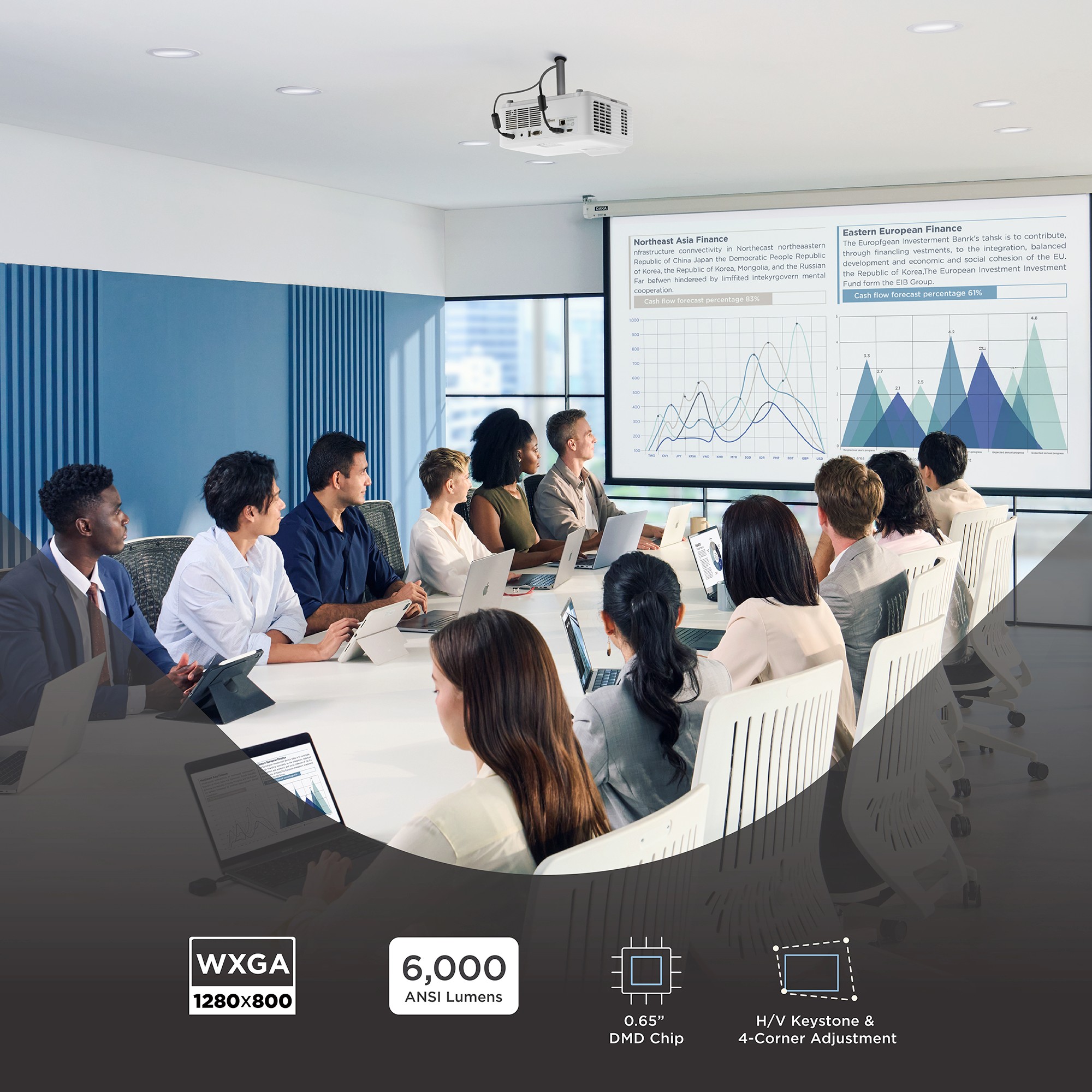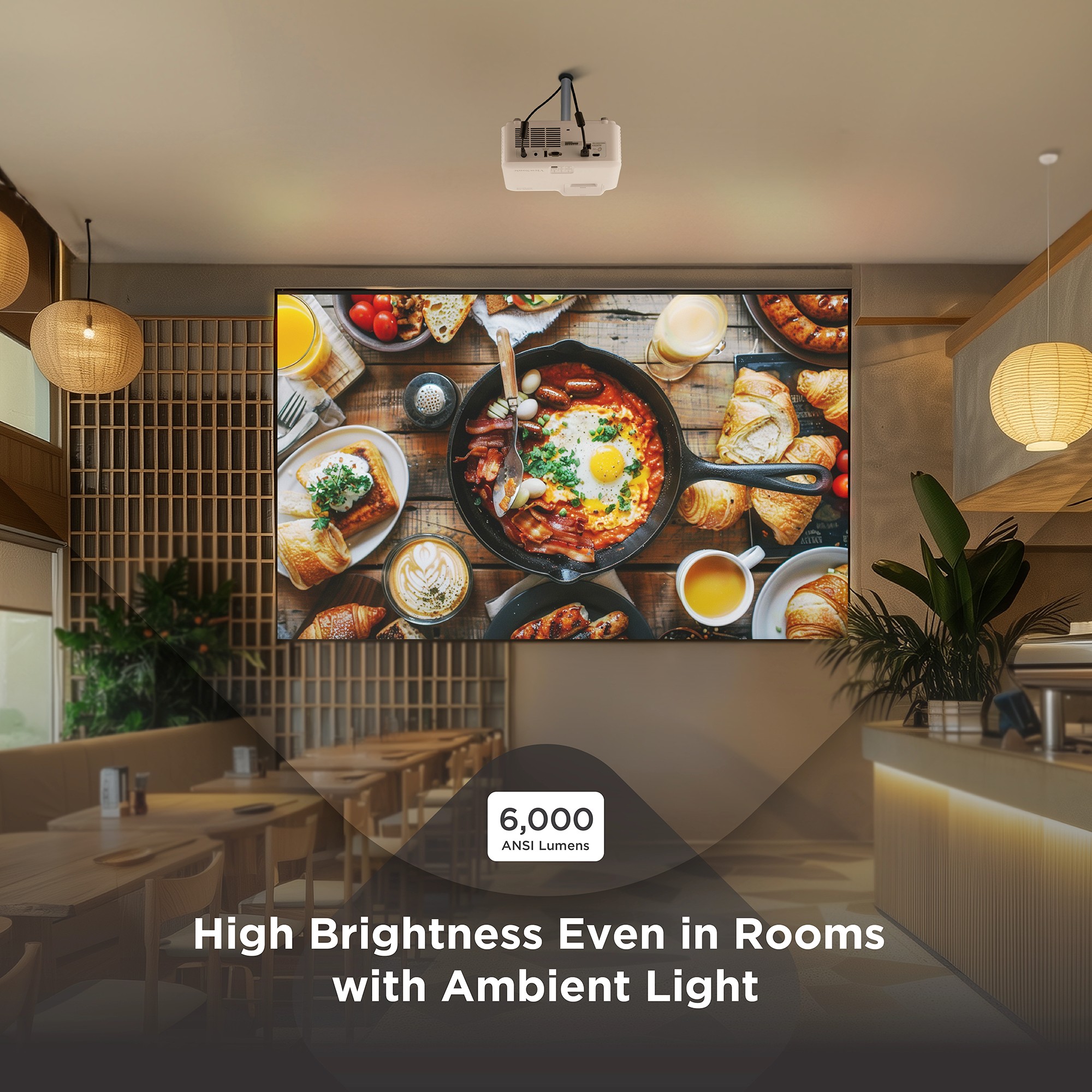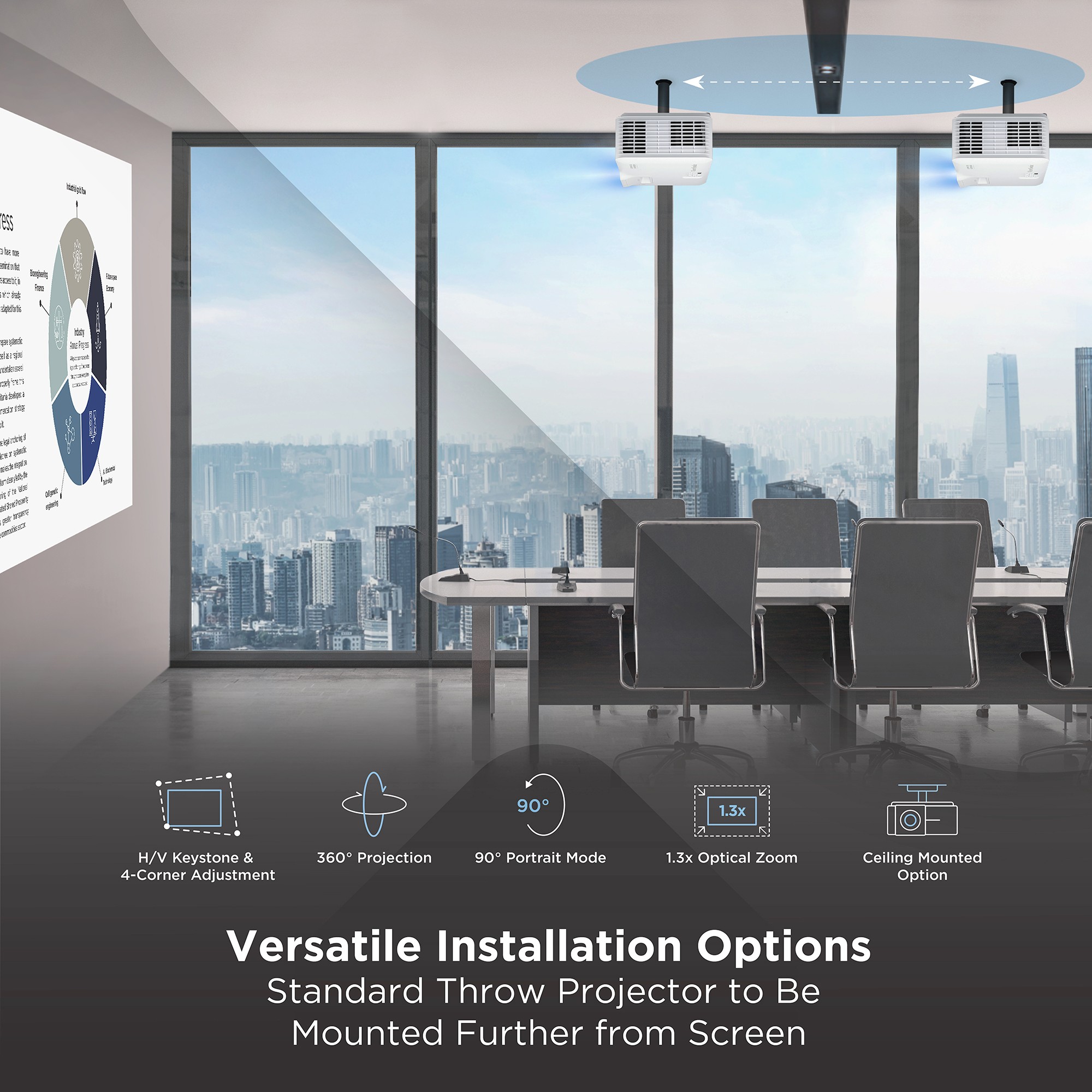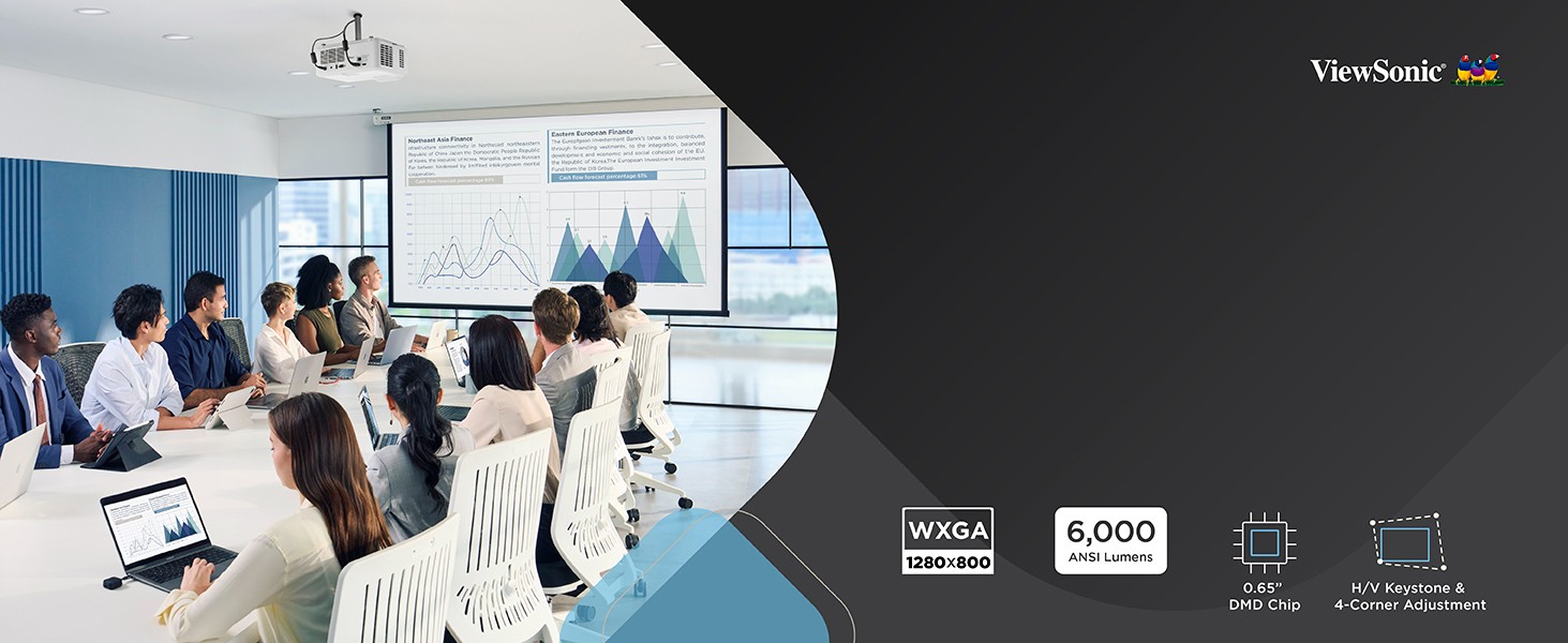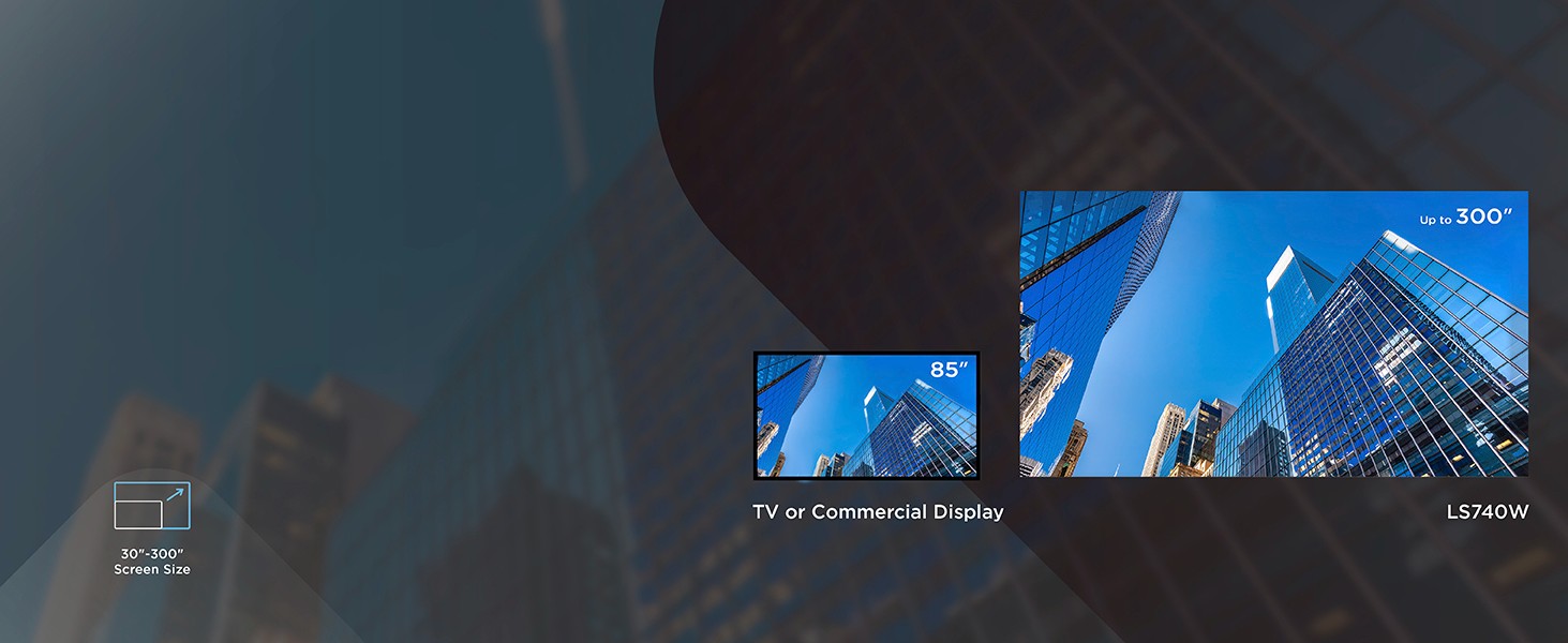 With the ViewSonic® LS740W laser projector, you can light up every room with brilliant presentations. Featuring the latest laser phosphor technology, the LS740W projector delivers 6,000 ANSI lumens of brightness to ensure crisp images even in rooms with ambient lighting. Enjoy a maintenance-free projection experience without having to deal with complicated lamp replacements. This eco-friendly, high brightness projection solution features a compact design for easier transportation. Experience screen sizes up to 300” in WXGA 1280x800 resolution for show-stopping images designed to fill up boardrooms, lecture halls, auditoriums and other public spaces. The LS740W laser projector comes loaded with features like 1.3x optical zoom, H/V keystone, 4 corner adjustment, 360° projection and portrait mode for easy setup and versatile applications.