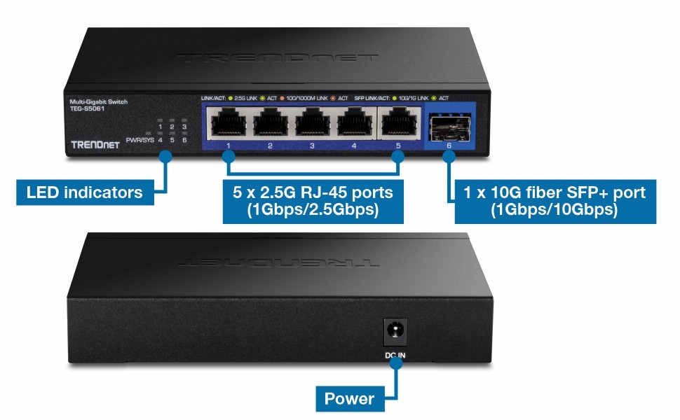 • TRENDnet LIFETIME PROTECTION: The TEG-S5061 6-Port Unmanaged 2.5G Switch is backed with Lifetime Manufacturer