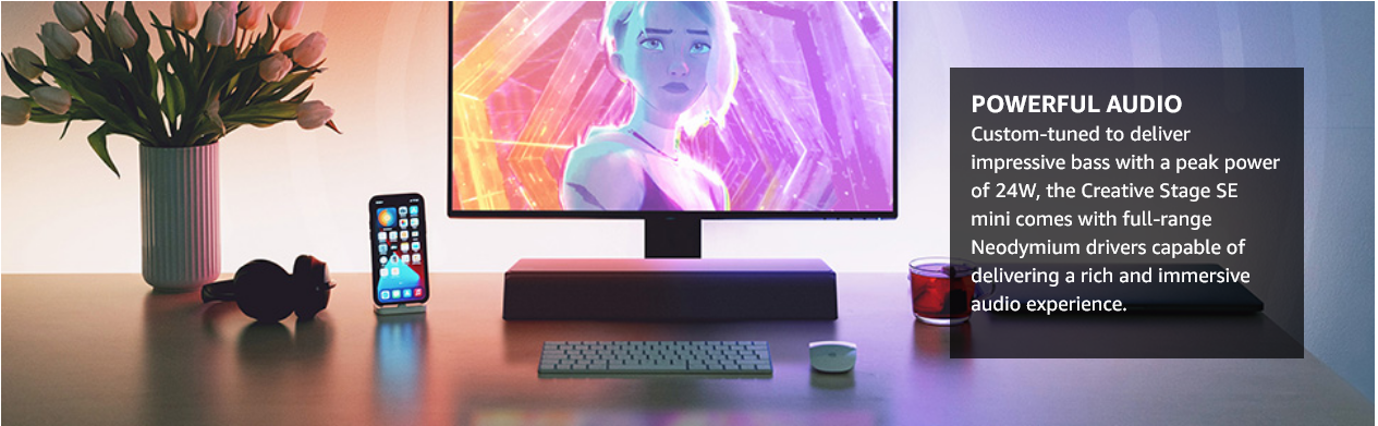 Upgrade your audio with Creative Stage SE mini, the compact, under-monitor soundbar is designed to deliver a powerful audio punch without breaking the bank.