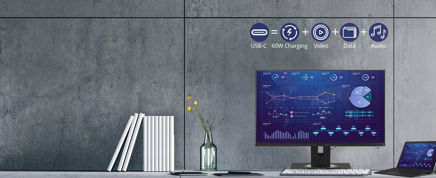 Designed for Surface (DfS) products must meet the rigorous standards of Microsoft to ensure optimal compatibility with Microsoft Surface products.* The ViewSonic® VG245 monitor is compatible with all USB-C Surface devices and is ideal for office and home use. USB-C connectivity offers convenient charging power, video and audio over a single cable, and will charge your Surface device without the need for an additional power cable. Along with USB-C, additional connectivity options include HDMI, DisplayPort, VGA, and a USB hub.