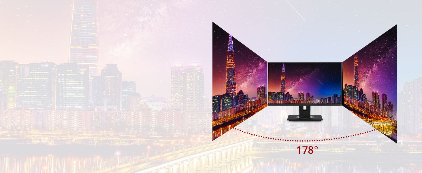 With IPS technology, and 178degrees viewing angle this monitordelivers consistent, accurate imagesno matter what angle you’re looking at the screen.