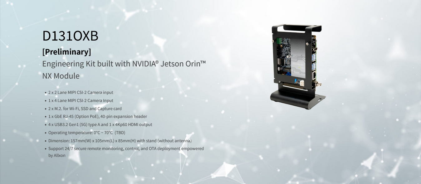 AVerMedia Engineering Kit D131 built with NVIDIA® Jetson Orin™ NX Module. This efficient SoM makes advanced analytics possible while providing the ability to handle a host of other embedded IoT applications.
