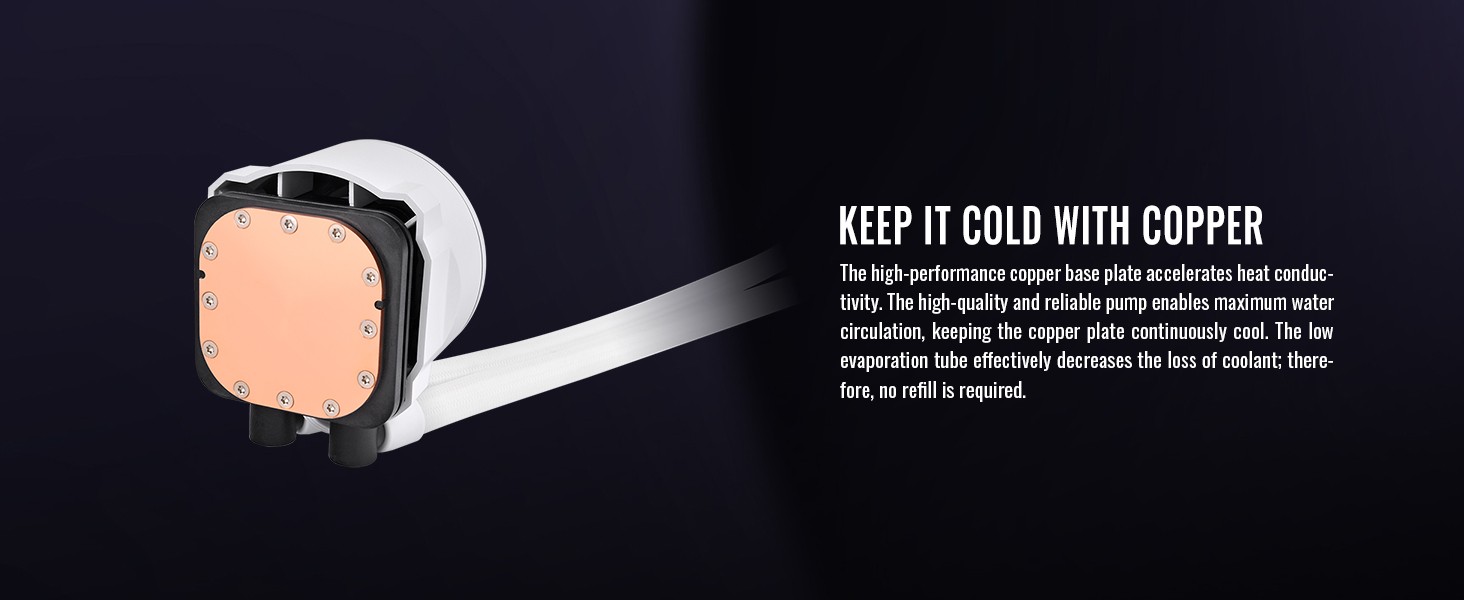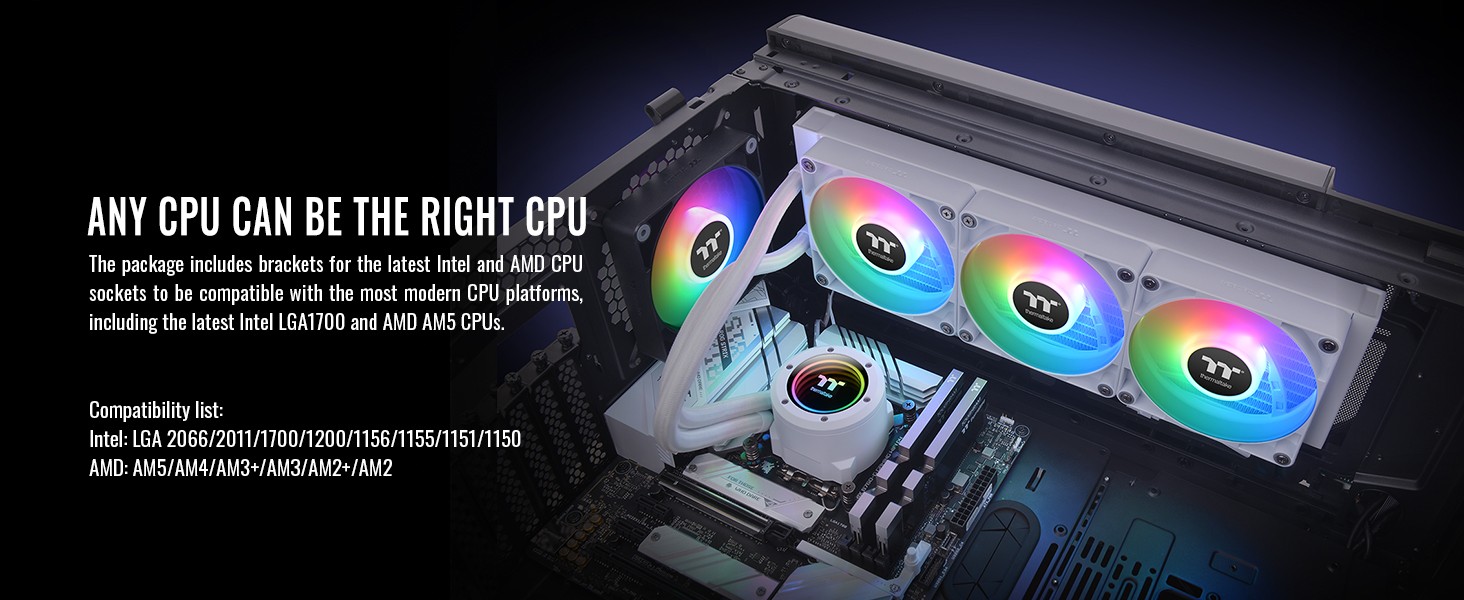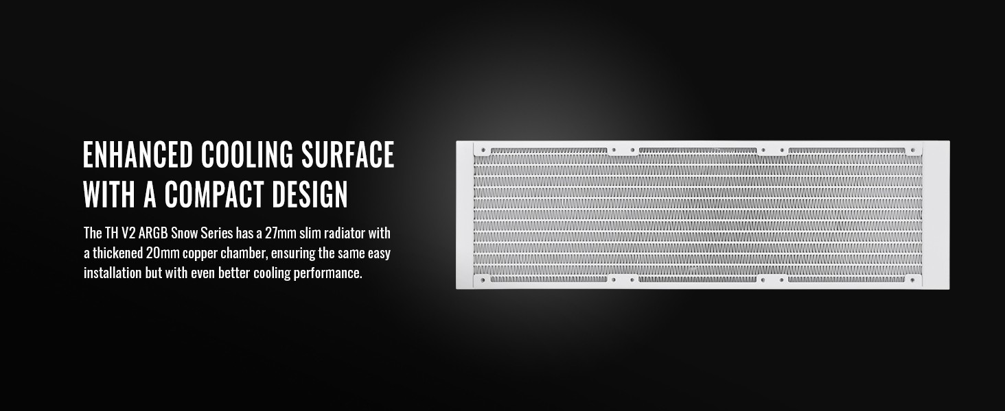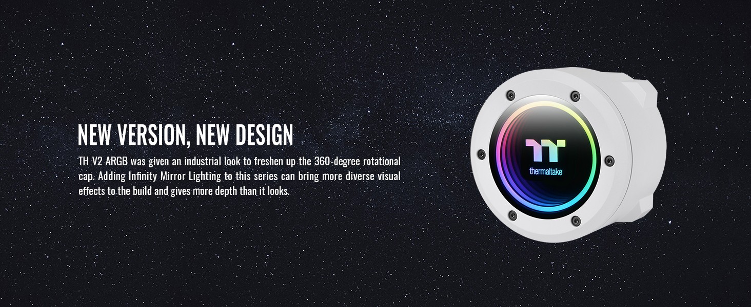 TH360 V2 ARGB has a new industrial cap with an infinity mirror light design, bringing a new vibe to the TH series. Equipped with three CT120 ARGB fans, the TH360 V2 ARGB is suitable for medium to large chassis that fit 360mm AlOs, and for those who seek to control lighting effects through 5V motherboard-controlled software.