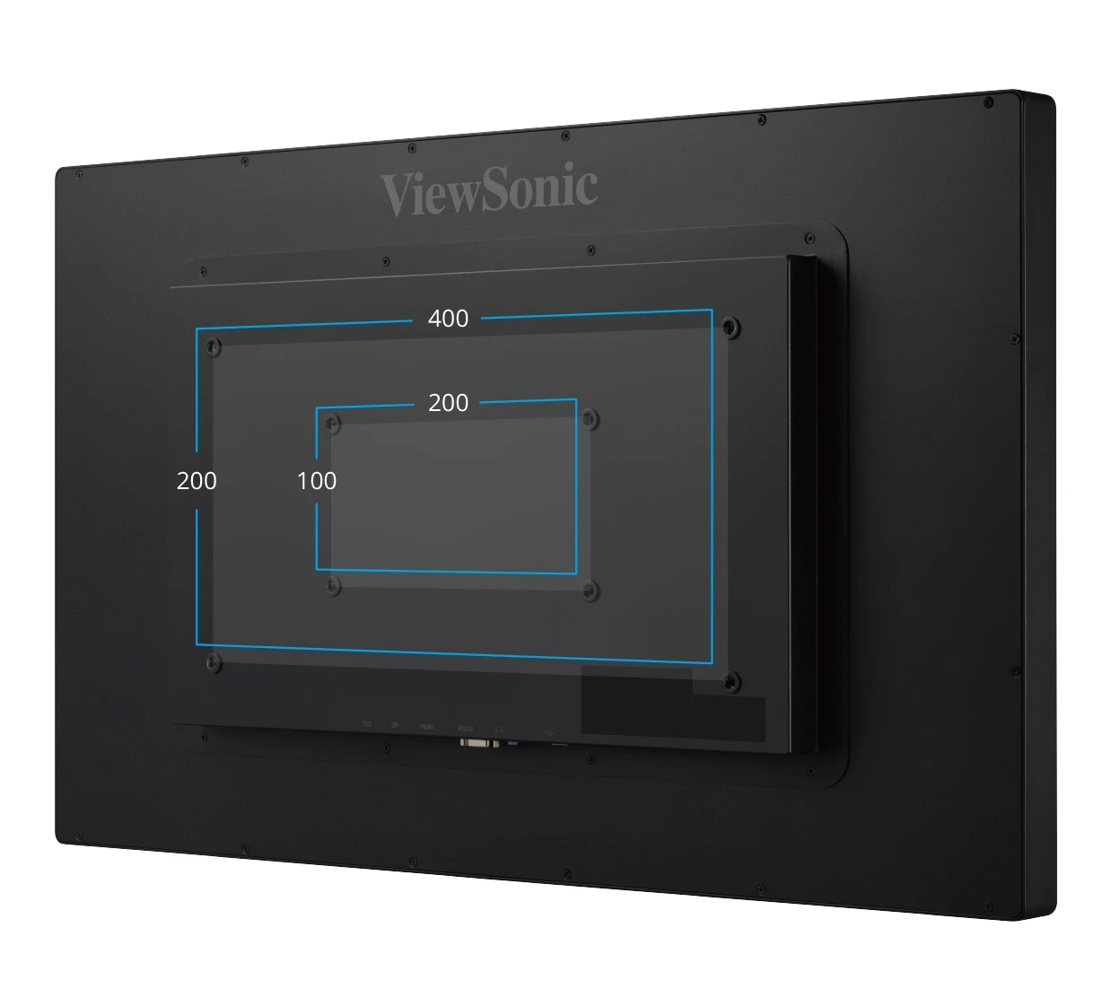 An open frame design with 200x100mm and 400x200mm VESA mounting options enable seamless and secure mounting in portrait, landscape or face-up orientations for easy integration in different venues.