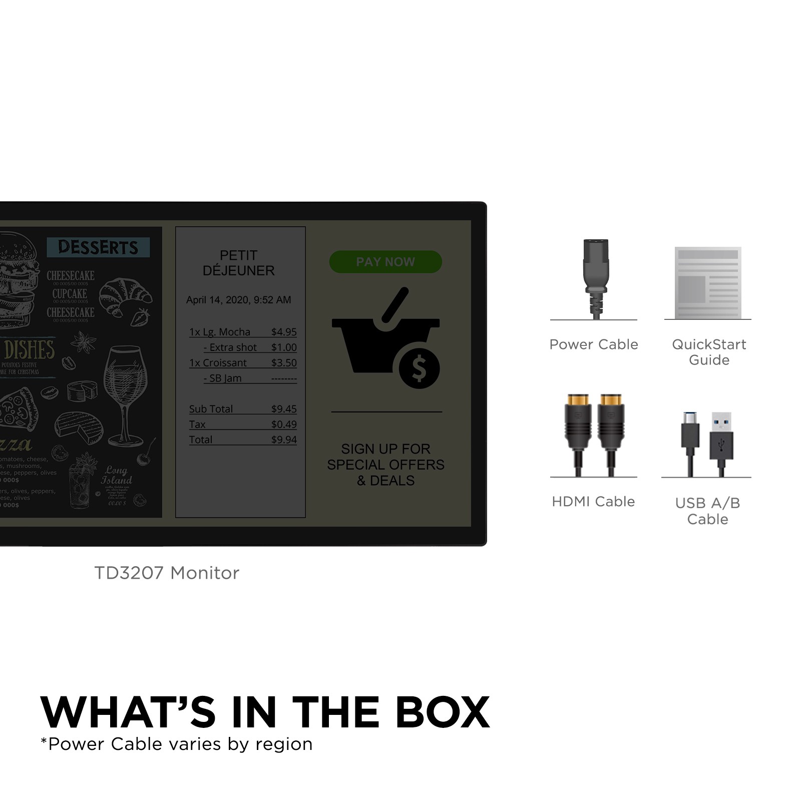 The TD3207 is the ideal solution for commercial and industrial spaces. Designed for heavy, continuous usage, TD3207 delivers a 24/7 long-life. With an open frame design, and equipped with VESA mounting design suitable for portrait and landscape mode, this monitor is ready to be incorporated into industrial, retail, and commercial applications. Resistant to moisture and scratches, the 3mm thick glass screen with 7H hardness features an intuitive 10-point PCAP touch technology for maximum interactivity. Featuring SuperClear ® VA panel technology, the device delivers lifelike imagery, vivid color, and constant brightness of up to 450 nits. Connection options include HDMI and DisplayPort inputs for effortless sharing capabilities and an RS232 allows you to control the device remotely.