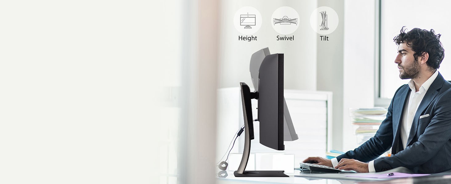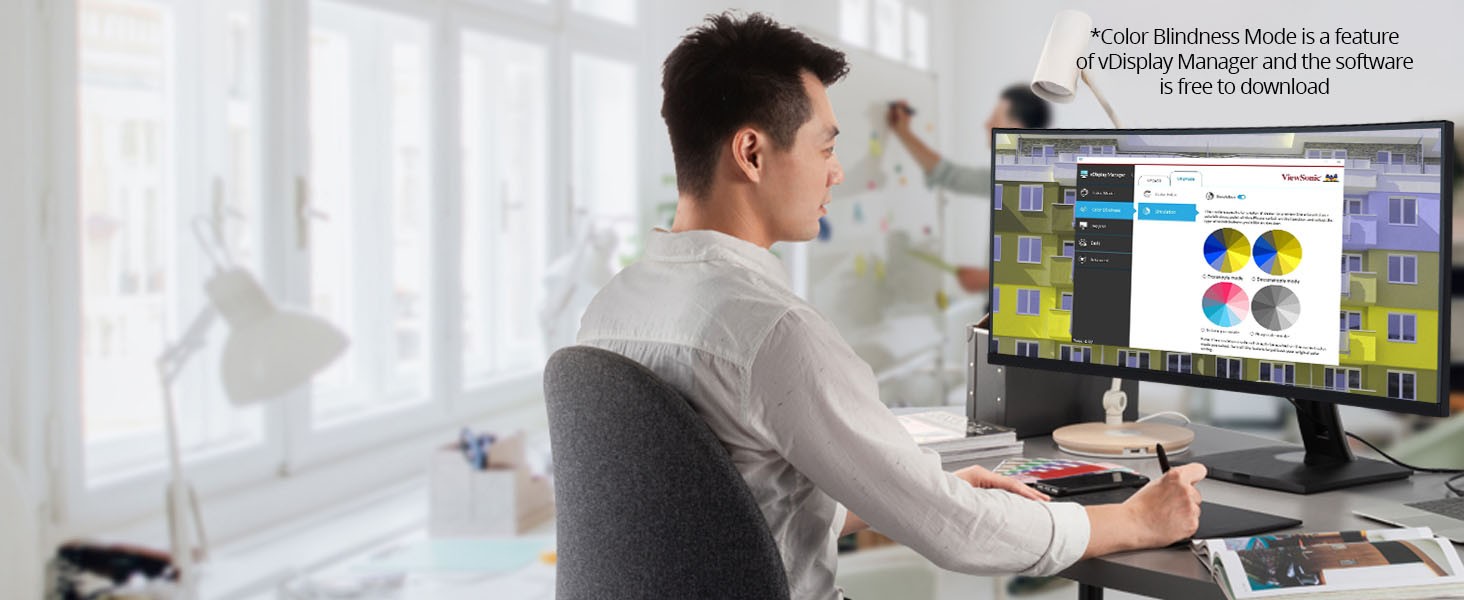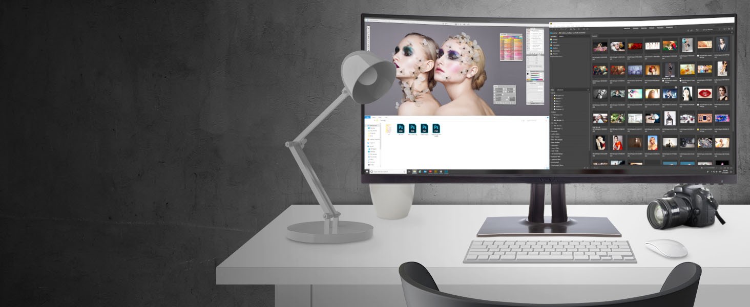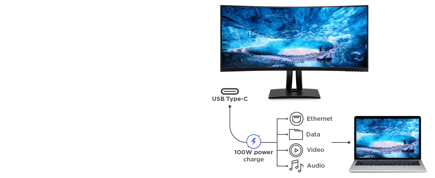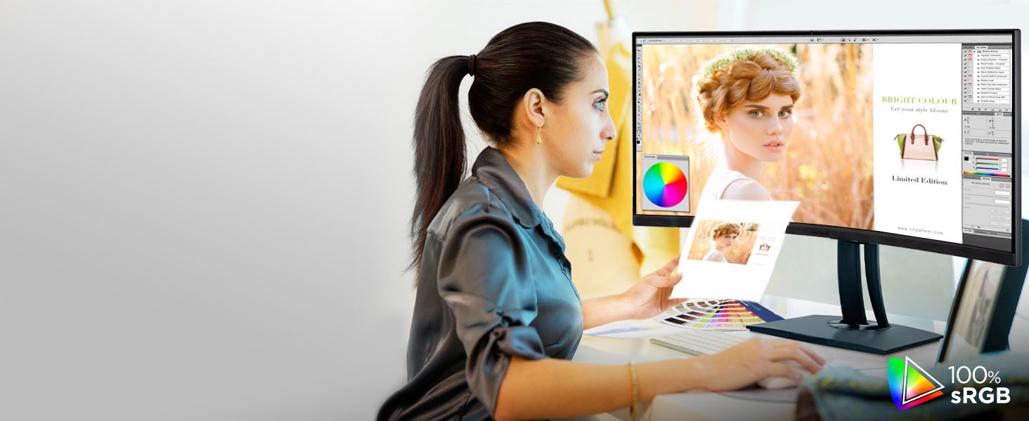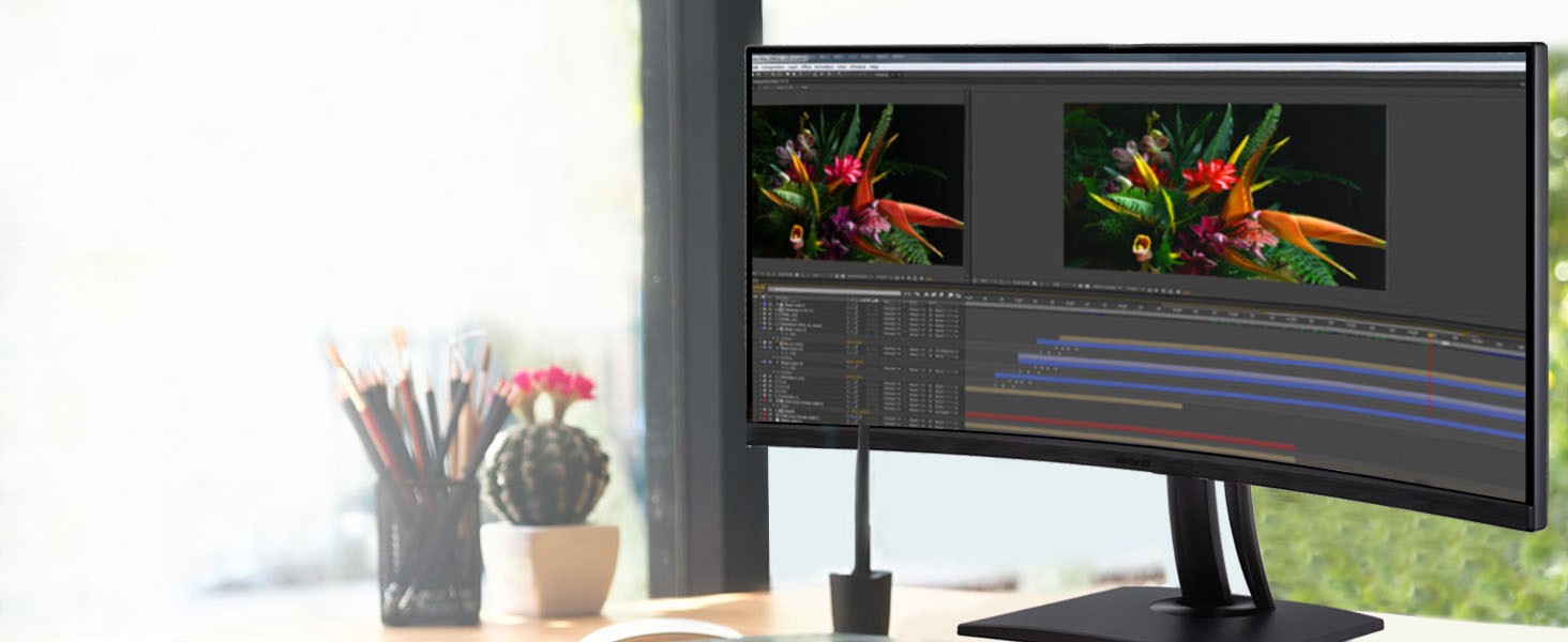 With an immersive curved screen and stunning UWQHD 3440x1440 resolution, the ViewSonic VP3456a monitor elevates your viewing experience from flat to panoramic. Delivering incredible detail and vivid colors across wide viewing angles, this monitor is engineered to provide precise color accuracy. Thanks to an expansive 34” frameless screen, ultra-wide 21:9 aspect ratio, and integrated speakers, this monitor is ideal for video editing, content development, and other color-critical applications. With a sleek and modern design, the VP3456a features a future-proof USB Type-C port with 100W charging, as well as DisplayPort technology, and HDMI. Enjoy reliable network connectivity with the integrated Ethernet port while the integrated USB hub also provides single-cable simplicity for connecting and charging your peripherals and accessories. The VP3456a provides an amazing Delta E<2 value and 99%* sRGB color accuracy for incredible and precise color accuracy. An integrated color uniformity function ensures consistent chromaticity across the screen, while a 14-bit 3D look-up table generates a stunningly smooth palette of 4.39 trillion colors, making it an ideal set-up for photographers, creatives, and designers.