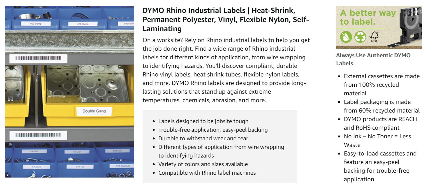 DYMO Rhino Industrial Labels | Vinyl and Permanent PolyesterVinyl labels offer moisture, chemical, and UV resistance. Permanent Polyester labels have a polished finish that leaves your work looking professional. Vinyl and Permanent Polyester labels meet OSHA, ANSI, and ISO standards. Color(s) available:
