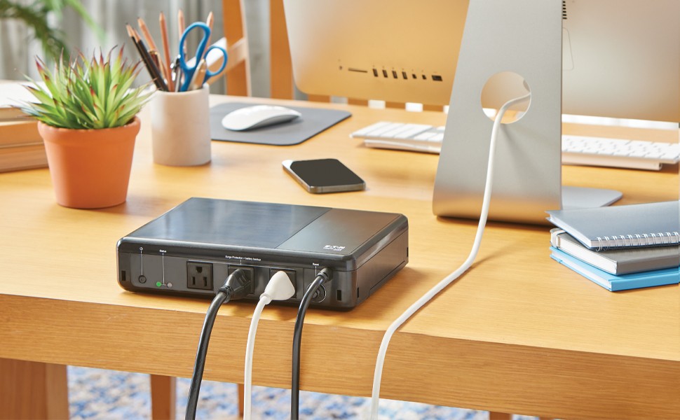 The UPS protects connected equipment against the harmful effects of power surges. It also filters electromagnetic and radio frequency interference to help protect devices from hardware damage and data loss.