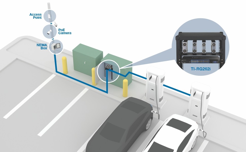 Grounding point on the industrial layer 2 rackmount switch protects equipment from external electrical surges