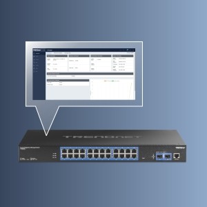 24 x Gigabit ports and 2 x SFP ports allow for a 52Gbps switching capacity, and 1 x console port (RJ-45 to RS-232) for out-of-band management