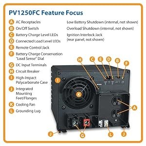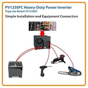 The PV1250FC efficiently converts DC power from a vehicle battery into 120V AC power for any type of equipment, from heavy-duty drills, saws and pumps to computers and sensitive monitoring equipment. The PV1250FC provides safe, stable, AC output power to help connected equipment perform at its peak. A frequency control feature ensures that devices dependent on tightly regulated AC line frequency, such as computers, VCRs and DVD/CD players, receive clean computer-grade power.
