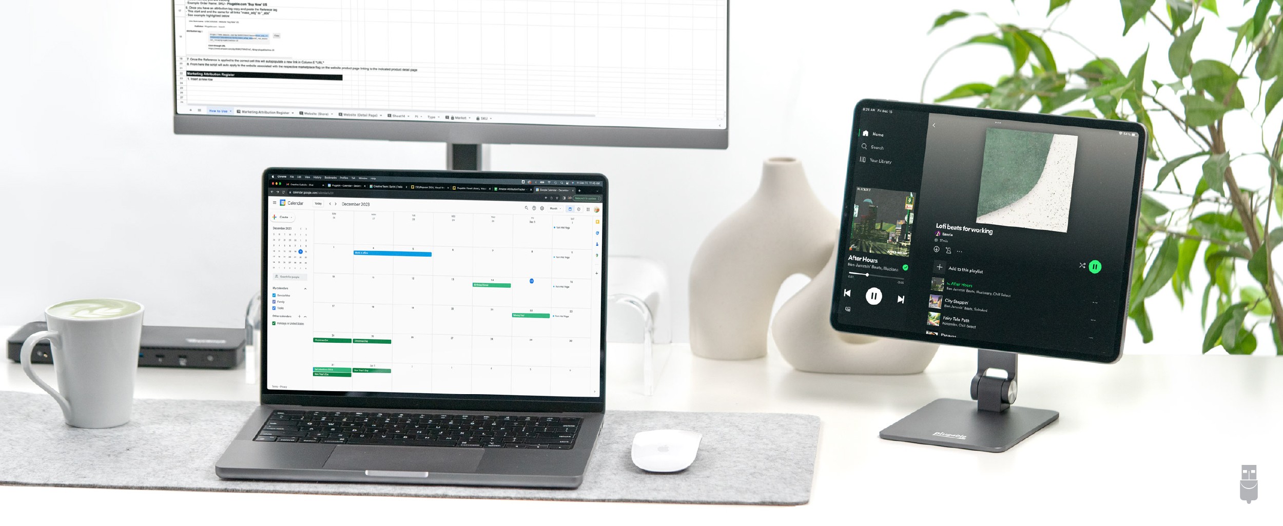 Get Stuck on the Magnetic iPad Stand Connect with the Plugable iPad Magnetic Stand for iPad Pro 12.9, Plugable’s innovative magnetic iPad stand. Designed primarily with 12.9" iPads in mind, yet versatile enough to accommodate other tablets, this stand is a game-changer for creatives, educators, and hybrid workers. Constructed from robust aluminum alloy and equipped with powerful N52 magnets, it offers a secure grip while the silicone padding protects your device from scratches. The most useful feature of the iPad Pro 12.9 magnetic stand is its extraordinary flexibility. The 360° rotatable magnetic panel and 180° adjustable arm allow you to find the perfect viewing angle for any task, whether you're sketching a masterpiece, delivering an interactive lesson, or managing your work on the move. Despite the sturdy build of this magnetic iPad mount, it's incredibly portable. The stand folds flat, slipping easily into your bag so you can take it to school, on the plane, or on the road. Transform how you interact with your tablet. From bustling coffee shops to quiet classrooms, this magnetic iPad holder provides stability, versatility, and ease of use. |