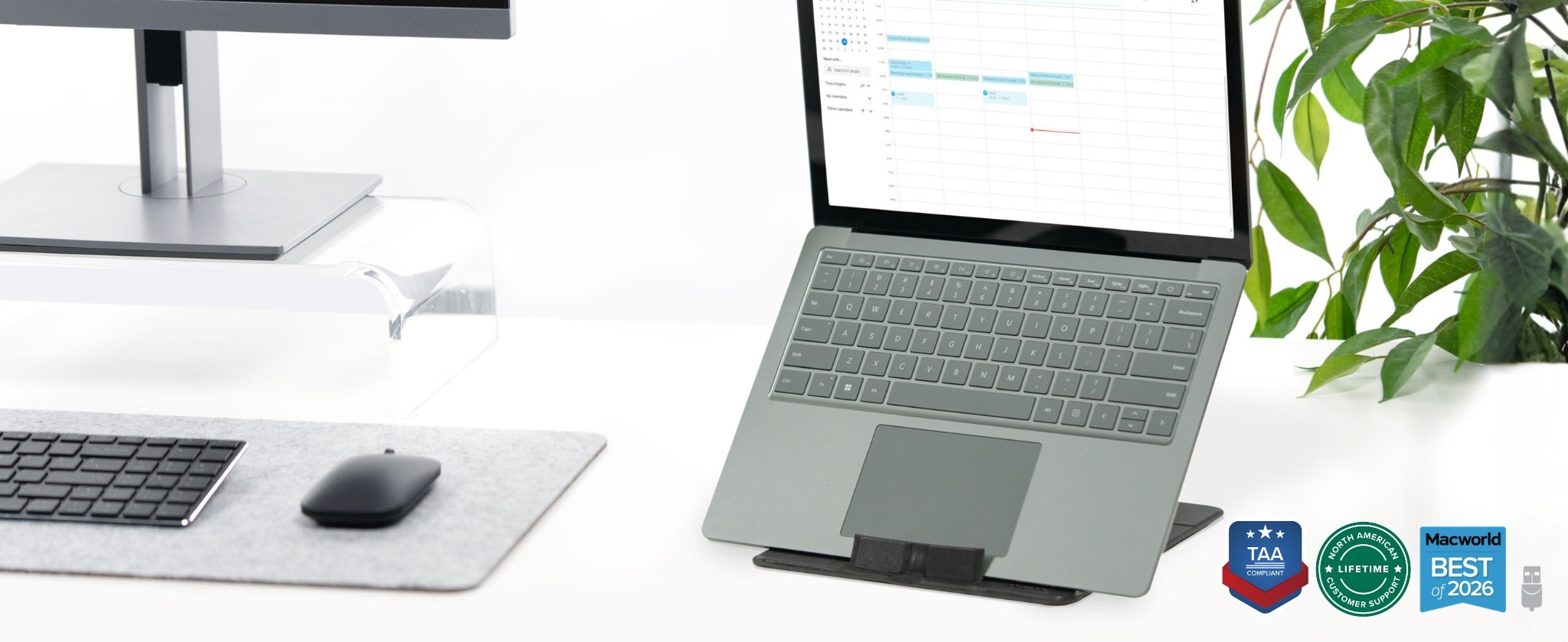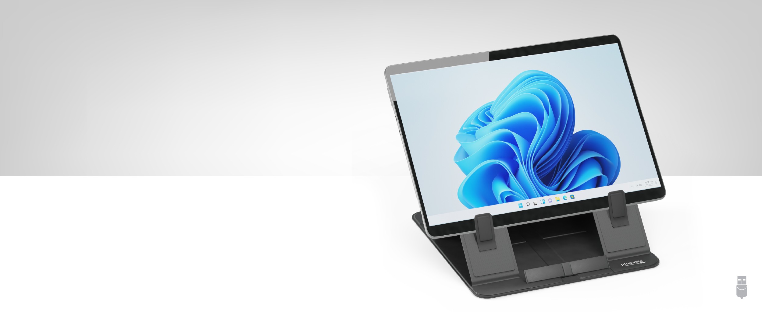 The TAA-compliant PT-STANDX is a fantastically flexible laptop and tablet stand adjustable to four angles (25°, 30°, 45°, and 60°) for ergonomic viewing, scrolling, working, and tapping.