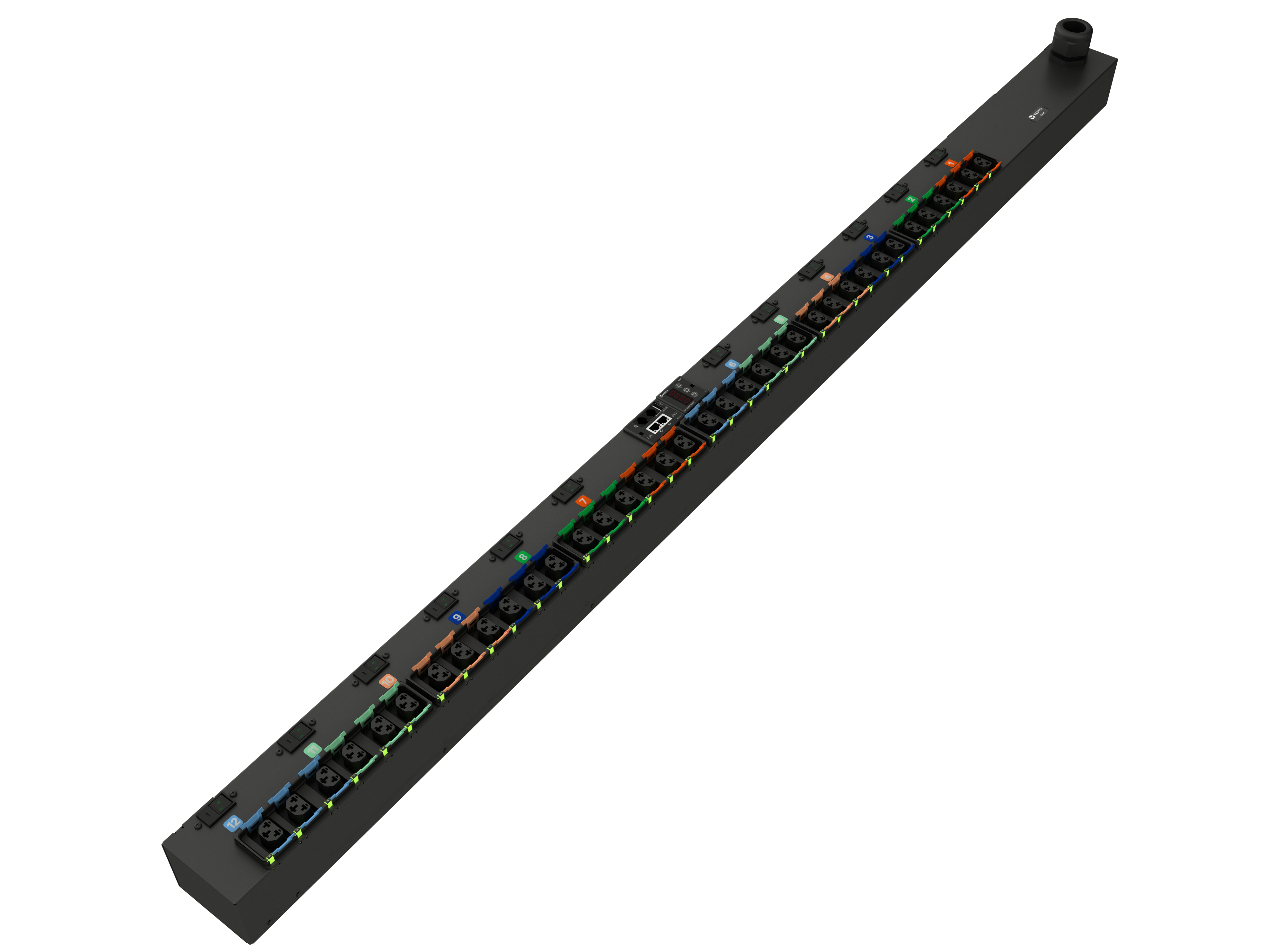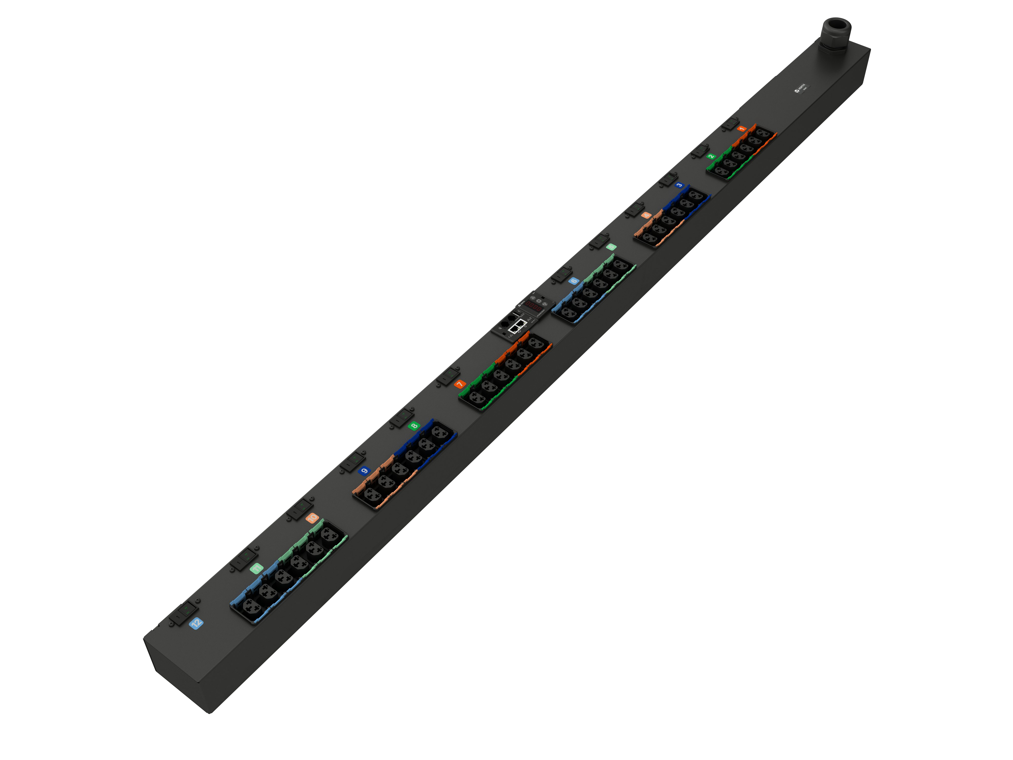 The rPDU has an easy-to-use front panel that provides visual identification of the active power source for easy monitoring. It also allows users to do a manual transfer of the power source. The transfer can be done either by touch of a button or remotely, so users have options on how to manage power loads during maintenance or emergency power loss.