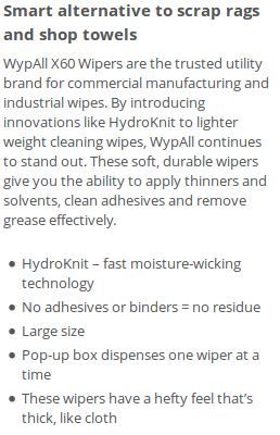 For industrial and commercial jobs, these bulk wipers can be used to apply solvents.