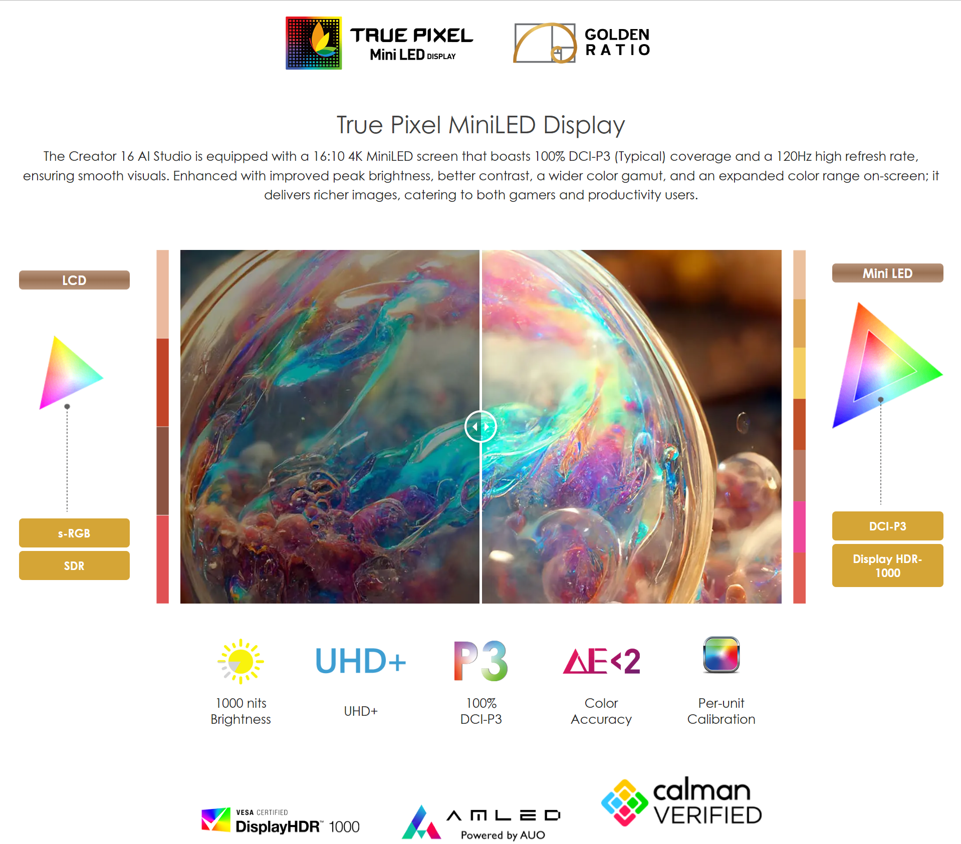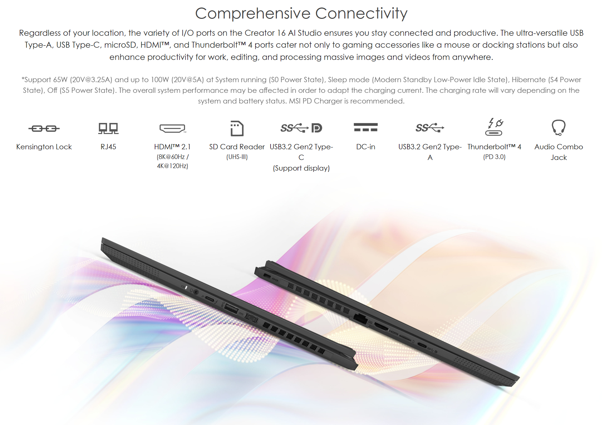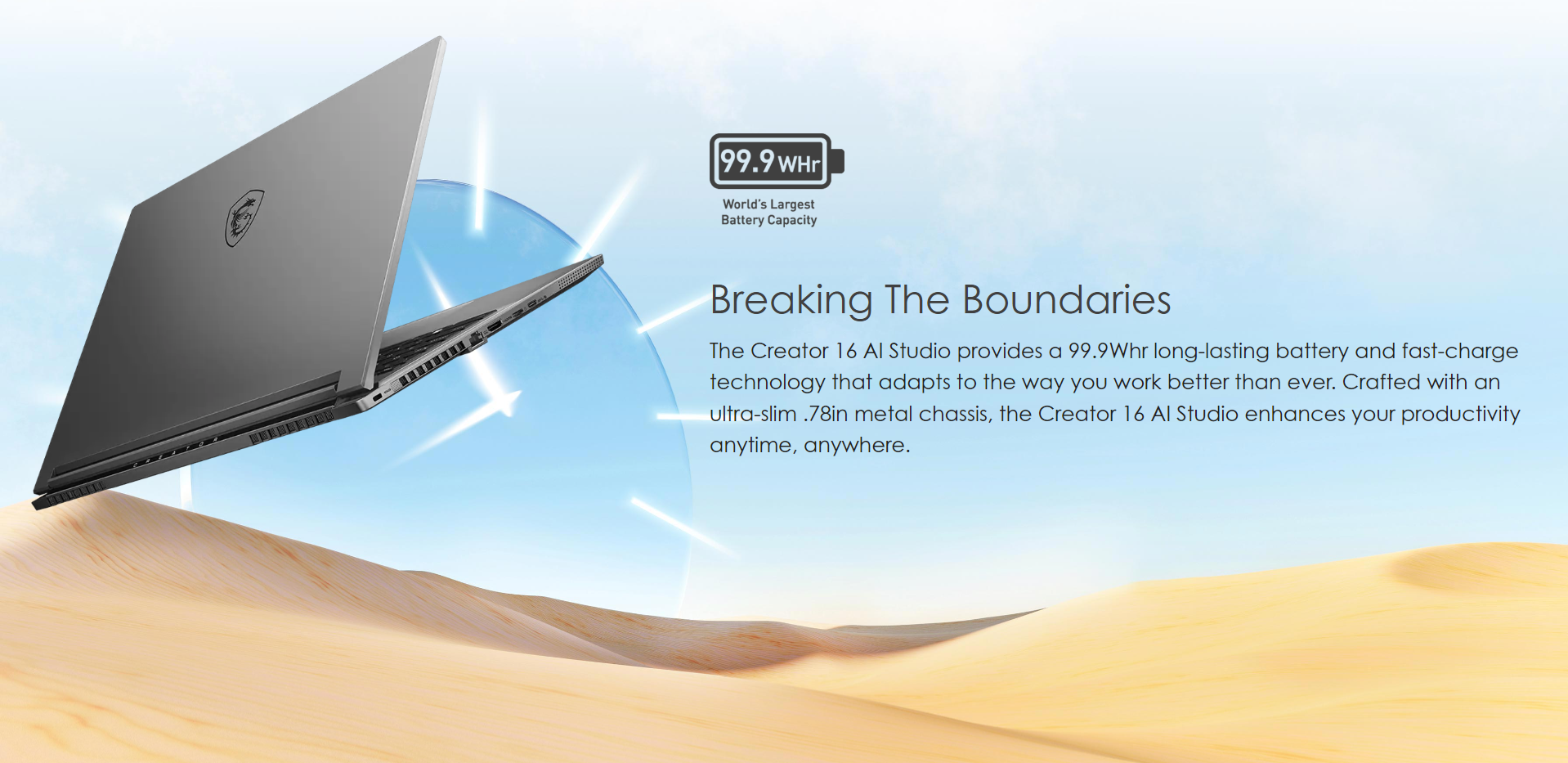 The Creator 16 AI Studio features a Magnesium-Aluminum (MgAl) alloy. Unlike typical aluminum, it employs an aero-industrial grade alloy called AZ91D, a blend of Magnesium and Aluminum. This alloy, widely used in the automotive and aerospace industries for its light weight and strength, offers an additional benefit - it's fingerprint-resistant. This lightweight and sturdy laptop is an optimal choice for portability