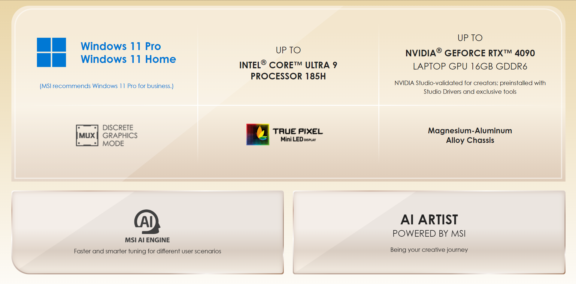 *MSI AI Engine & AI Artist will be provided through an early 2024 update. The interface and functionality may differ due to version change.