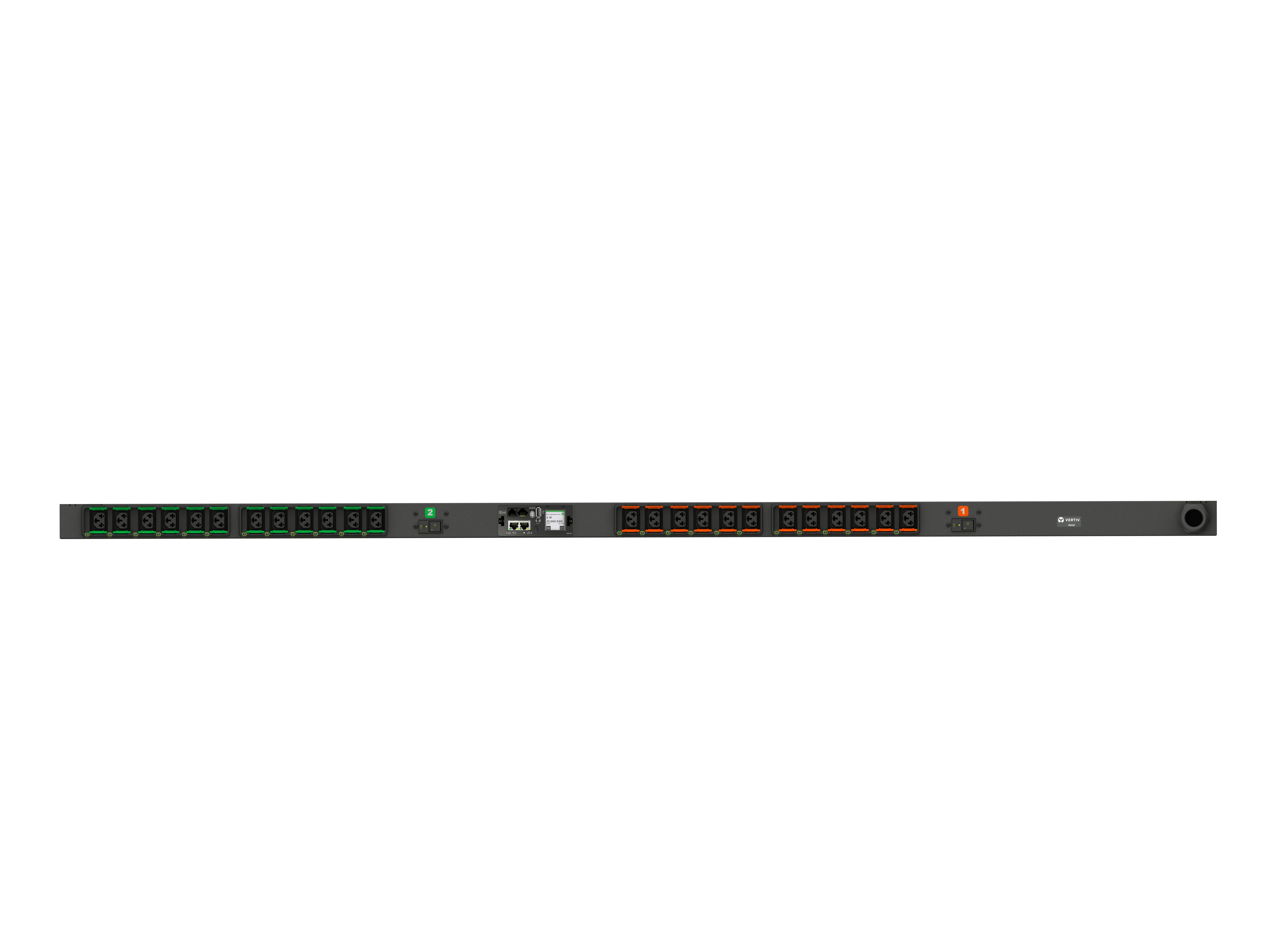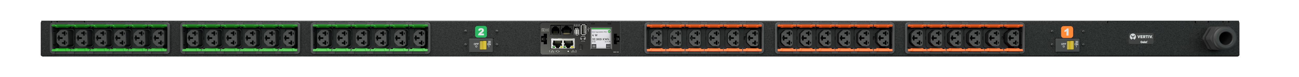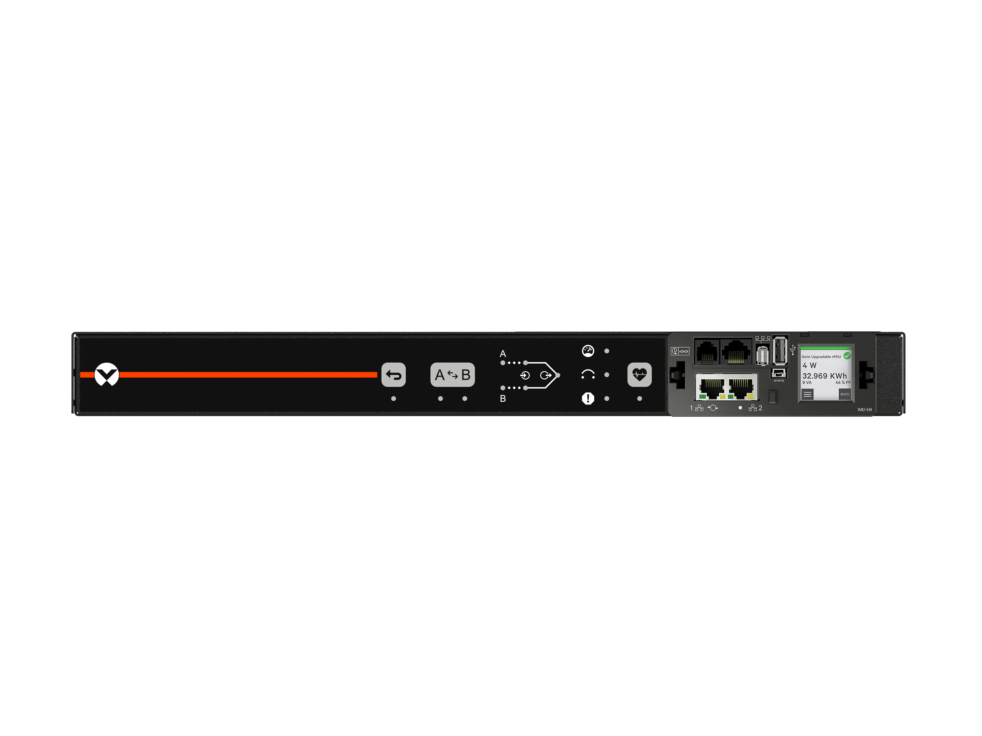 Integrated with the Vertiv Geist Next Generation IMD with 128x128 high-visibility LCD that displays power data. It has an internal sensor that intelligently adjusts the orientation based on horizontal or vertical installation.