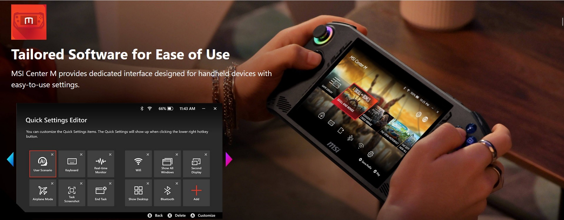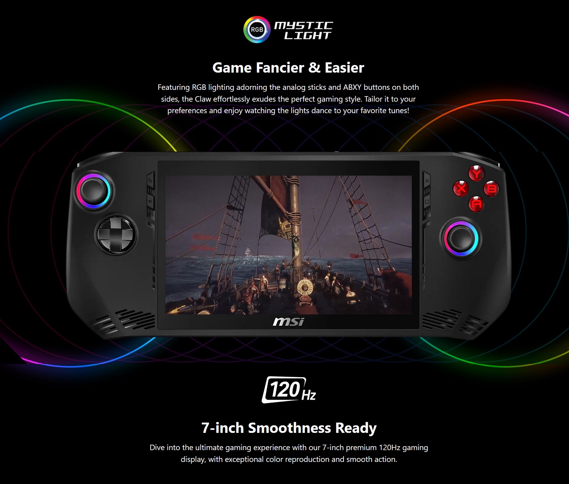 MSI Claw A1M, a groundbreaking handheld gaming device that marks a new era in portable gaming experiences. Powered by Intel ® Core™ Ultra processors and featuring Intel ® XeSS technology, ensuring a smooth and immersive gameplay experience even on AAA titles