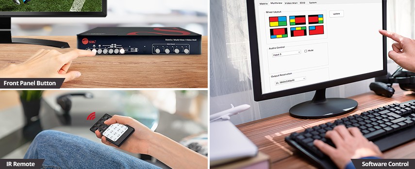 Easily control via front panel buttons, IR remote control and software control through Micro-USB port
