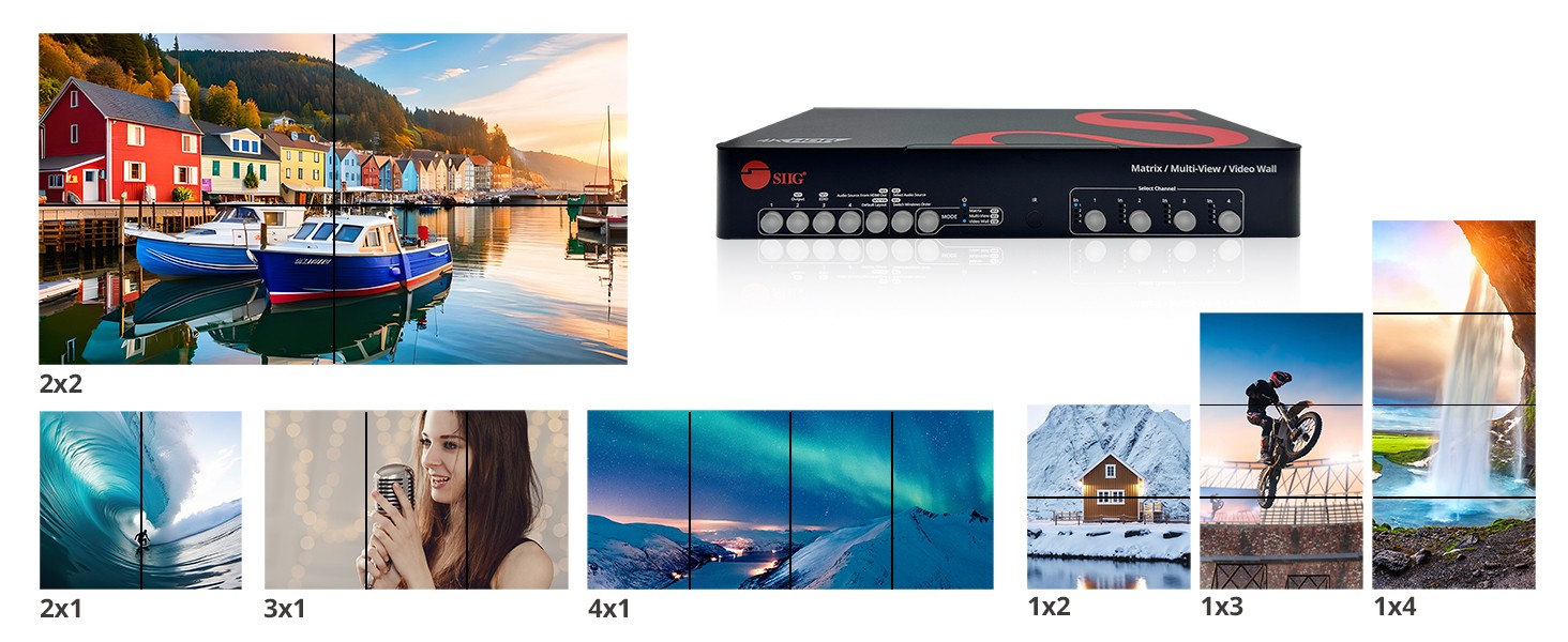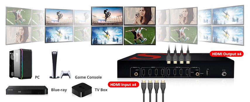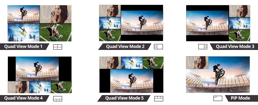 M ulti-viewer mode can routes four ultra-high definition HDMI video sources to a single display at the same time, enhance your viewing experience with Picture-in-Picture (PIP) and five quad-view display mode options