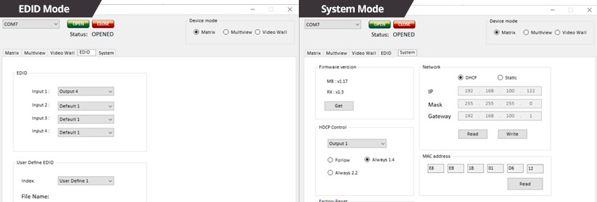 Matrix / Quad-viewer and Video Wall Mode Settings