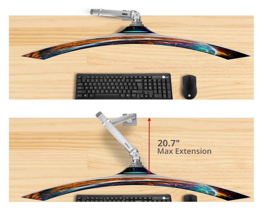 Extend up to 20.7 inches from the wall, providing ample space for your monitor to be positioned at the perfect height and distance for your needs, freeing up space on your desk