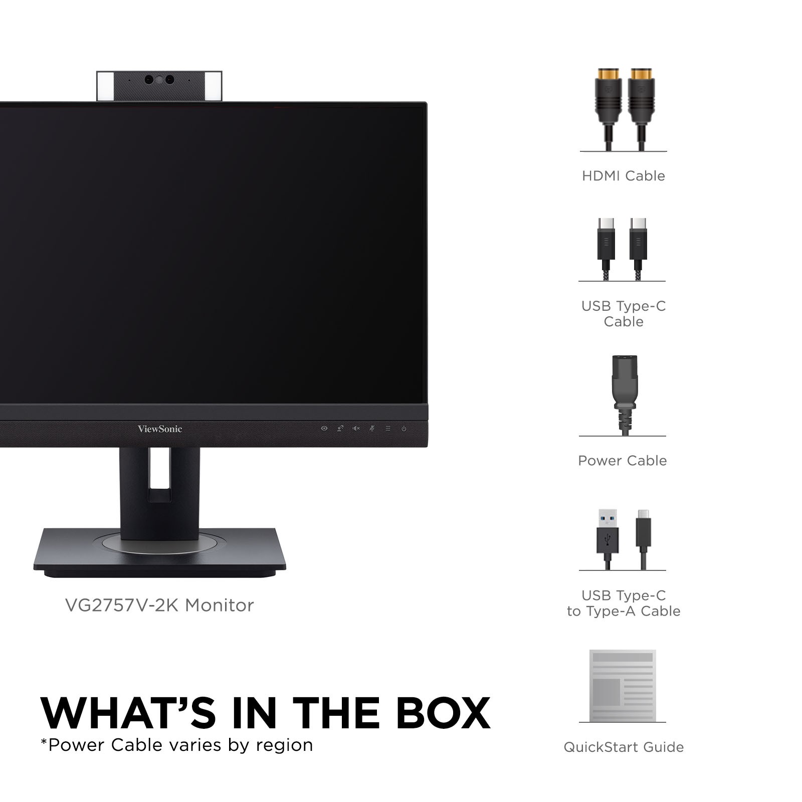 ViewSonic VG2757V-2K video conferencing monitor is a docking monitor with premium features such as a pop-up webcam that will help maintain productive meetings whether in the office or working from home, with secure features like a Windows Hello compatible IR camera and Zoom certification for peace of mind on security and reliable conferencing. Premium webcam features to improve visual and audio aspects of video calls such as built in LED lighting, and powerful speakers, along with a QHD 2560 x 1440p resolution for stunning visuals. The IR camera allows for secure and easy sign-on with Windows Hello. Full docking functionality (daisy chain, USB-C single cable connectivity with 90W power delivery, reliable ethernet connectivity) simplifies accessories needed to deploy for IT infrastructure.