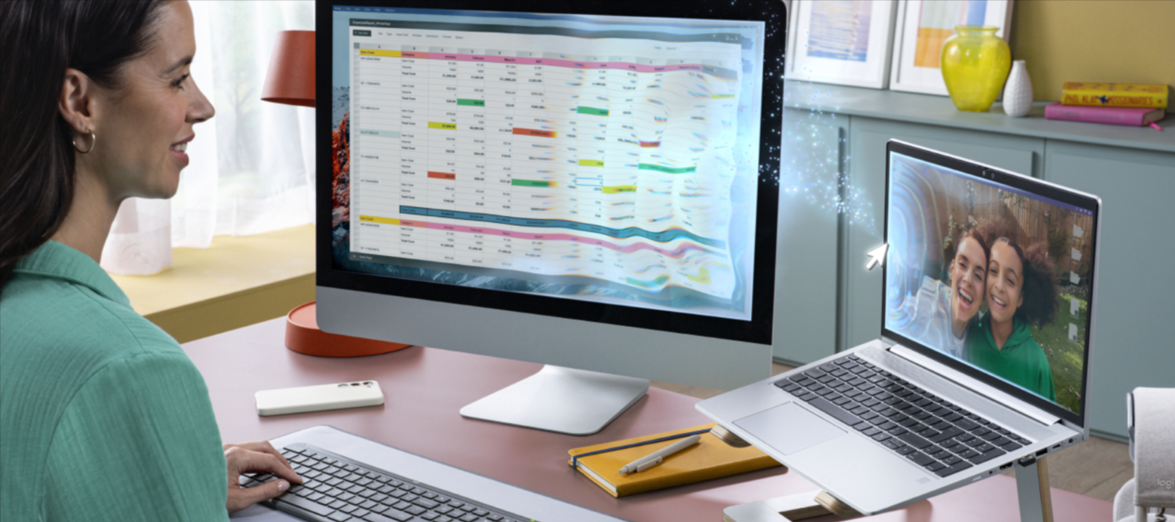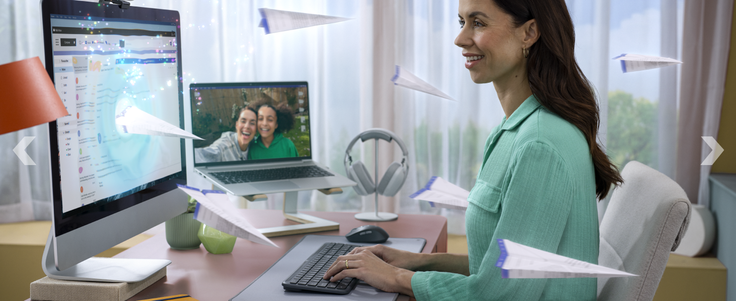 A mouse and keyboard that puts a little bit of magic at your fingertips. Work from home, or anywhere in the world - and then be in the moment with your loved ones
