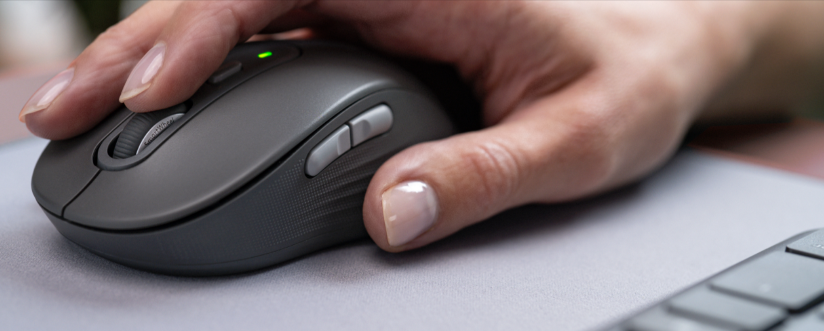Conjure some focus time with quiet typing and clicking – others around you will appreciate it. The Signature Plus Mouse M750 L with SilentTouch technology produces 90% less click noise.