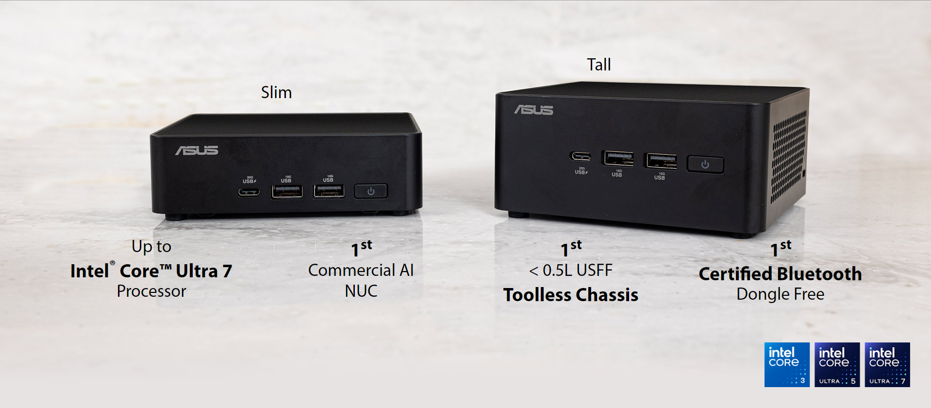 ASUS NUC 14 Pro delivers best-in-class performance thanks to the all-new Intel ® Core™ Ultra processor family. It is the most comprehensive mini-PC built with Intel vPro® Enterprise for exceptional security, manageability, and stability. With certified Bluetooth ® dongle-free connectivity and three AI engines – GPU, NPU, and CPU – for high throughput, low power, and fast response, ASUS NUC 14 Pro delivers robust computing capabilities. It is equipped with Wi-Fi sensing for intelligent energy efficiency, and a “tried and trusted” 4x4-inch chassis designed for toolless access for easier, safer, and faster upgrades.