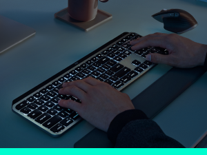 Backlit keys light up when your hands approach the keyboard and brighten or fade to suit your environment. Control backlighting in Logi Options+