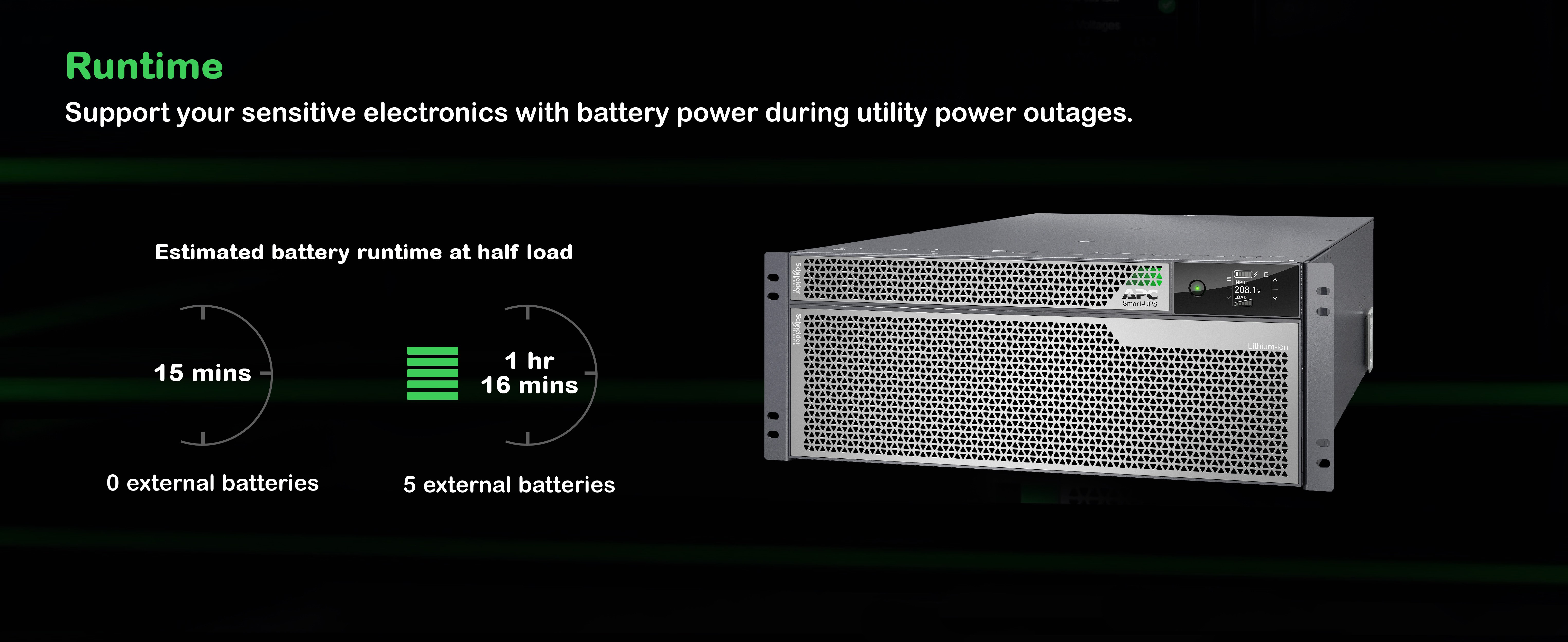 Smart-UPS Ultra features Lithium-ion batteries designed to last as long as the UPS. No replacement will be necessary under normal operating conditions.