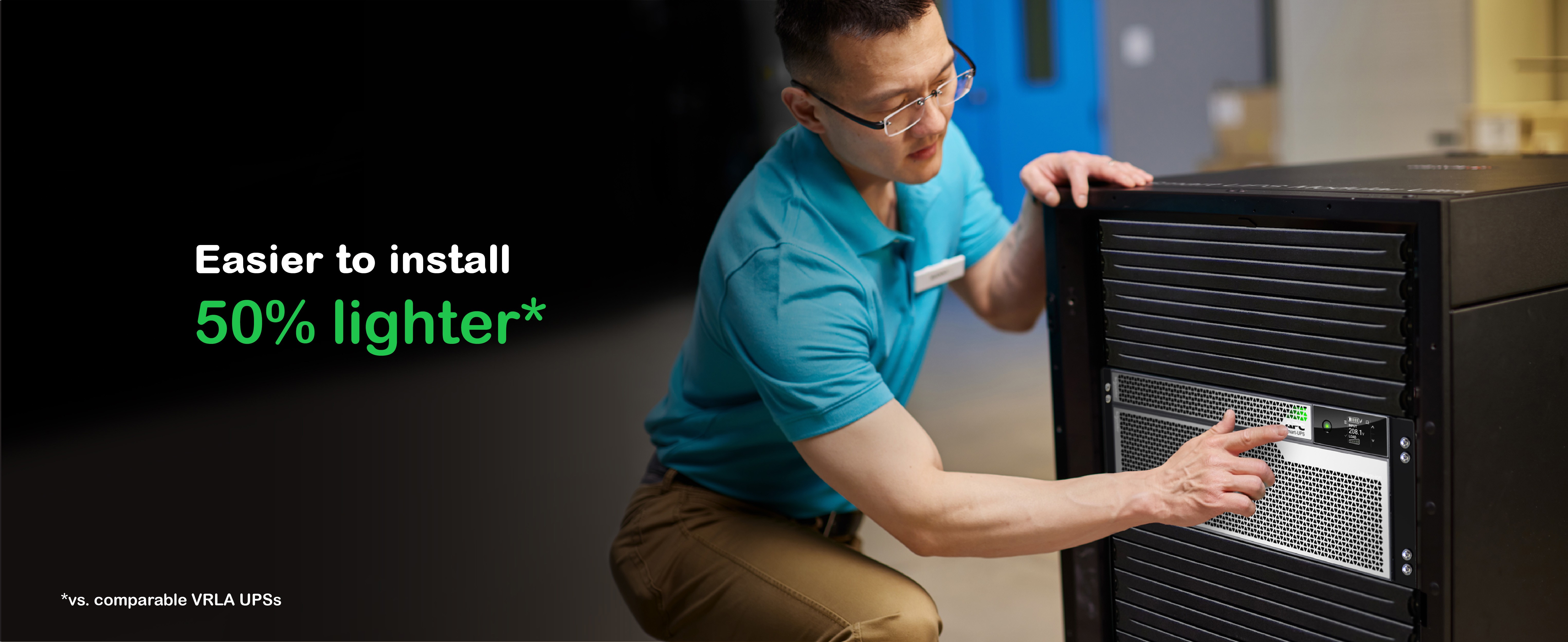 We leveraged the combination of innovative UPS Design, next-generation semiconductor technology and lithium-ion batteries allowed us to create the smallest, lightest 8kVA UPS to date.