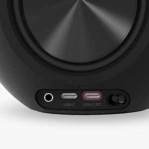 For an even more powerful playback, plug the speakers to a 30W or higher USB PD adapter (not included) to enjoy an improvement in power of up to 30W RMS and a 60W peak.