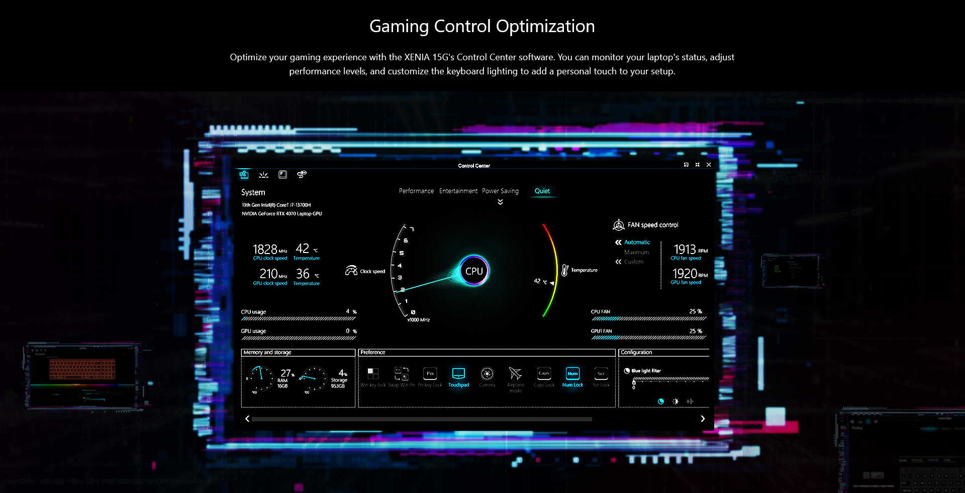 Upgrade your performance with XENIA 15G’s high-quality ADATA memory and SSD options. With up to 32GB DDR5 memory and up to 1 TB ADATA LEGEND 850 SSD, you'll experience lightning-fast speed and seamless operation