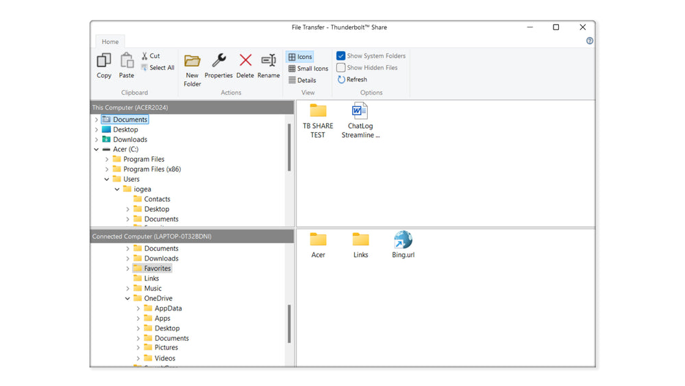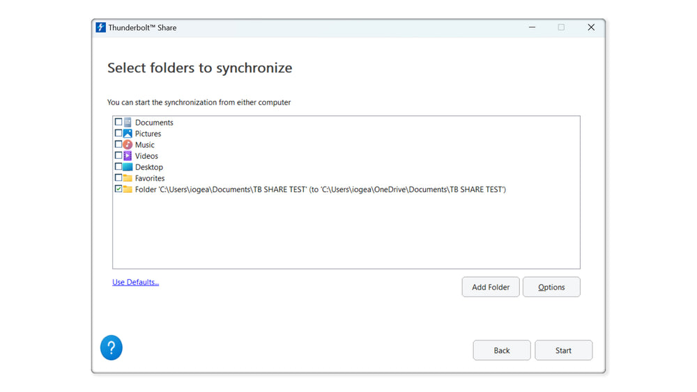 Thunderbolt™ share Syncs files and folders between two PCs for easy backup and collaboration.