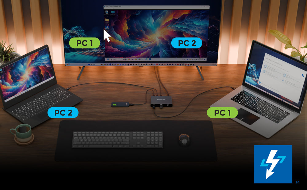 Seamlessly multitask and share peripherals between two computers with Thunderbolt™ Share. Control your second computer from your primary device, expanding your workspace and productivity.