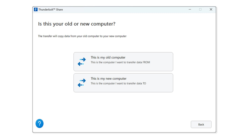 Thunderbolt™ Share makes it easy to transfer files from an old computer to a new one, much faster than Wi-Fi or the Cloud.