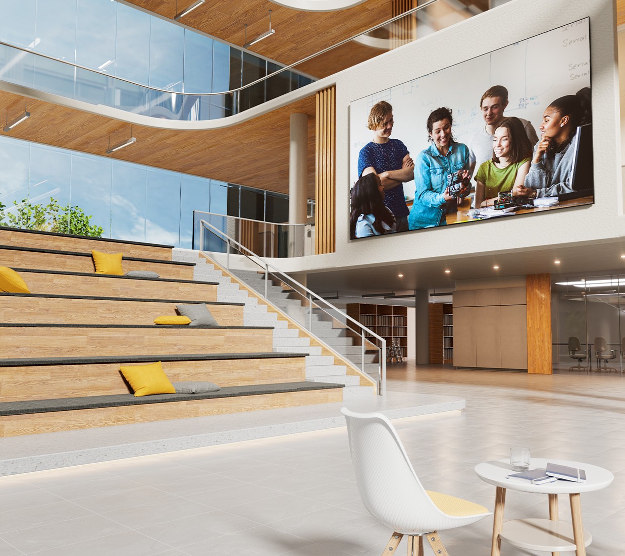 This display uses Glue-on-Board (GOB) technology, a protective shield that safeguards the LEDs during installation and daily use. Its IP54 rating ensures resistance to bumps, dust, and moisture, making it perfect for busy public spaces such as auditoriums, lecuture halls, gymnasiums and more.