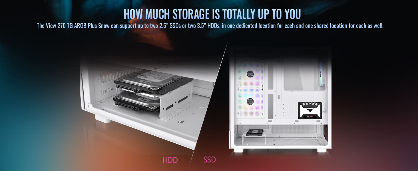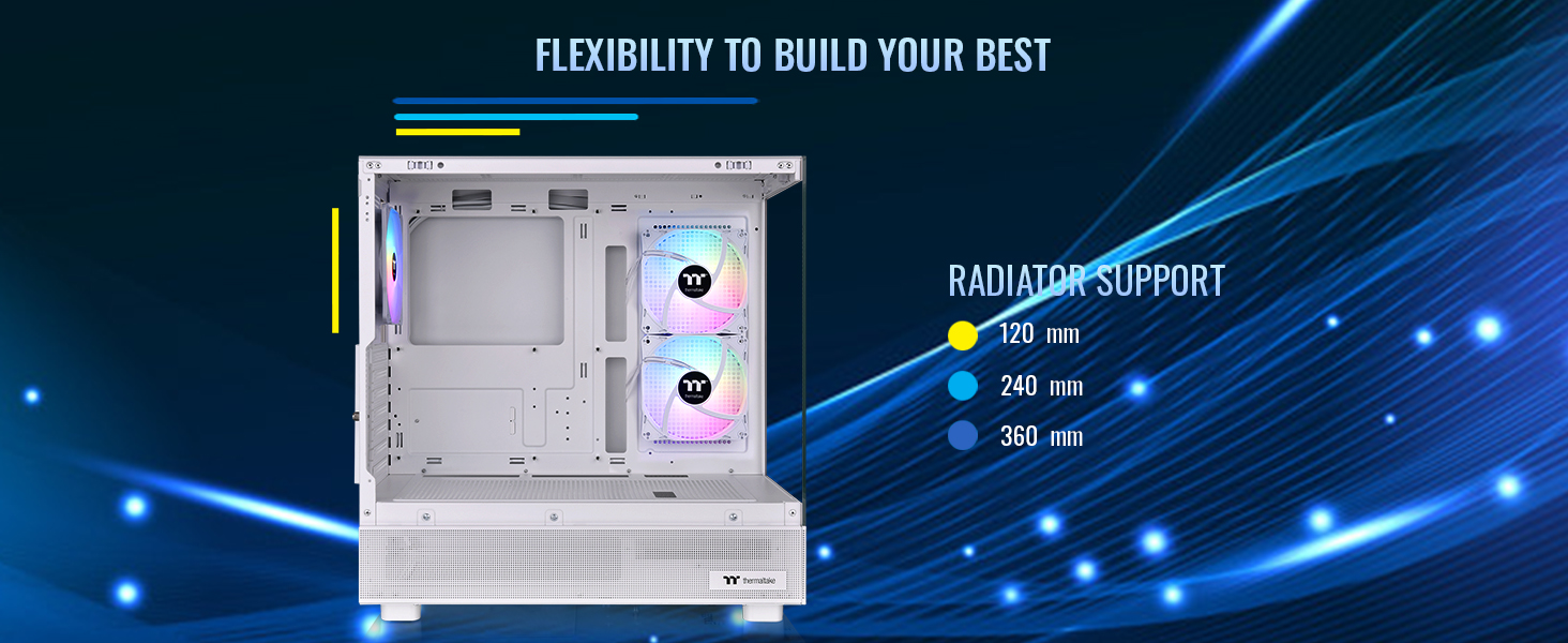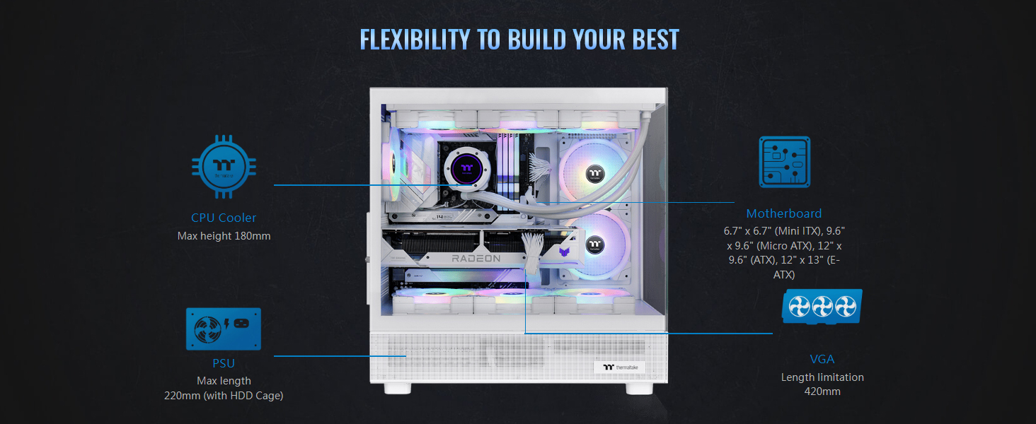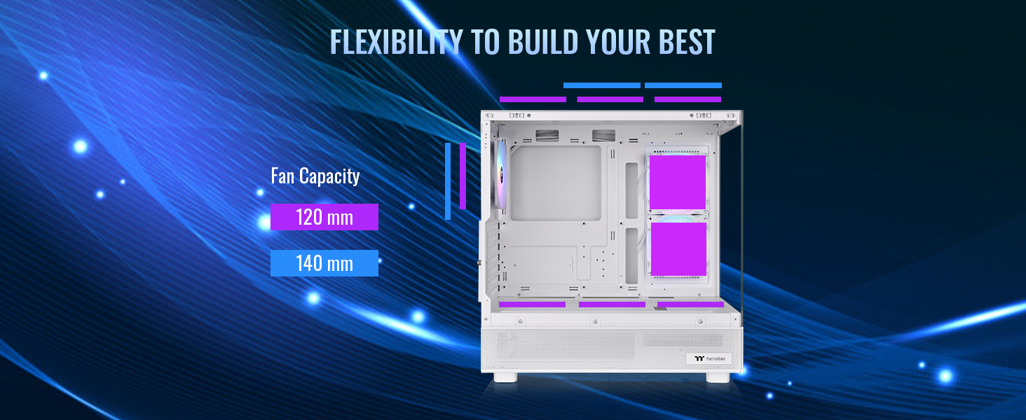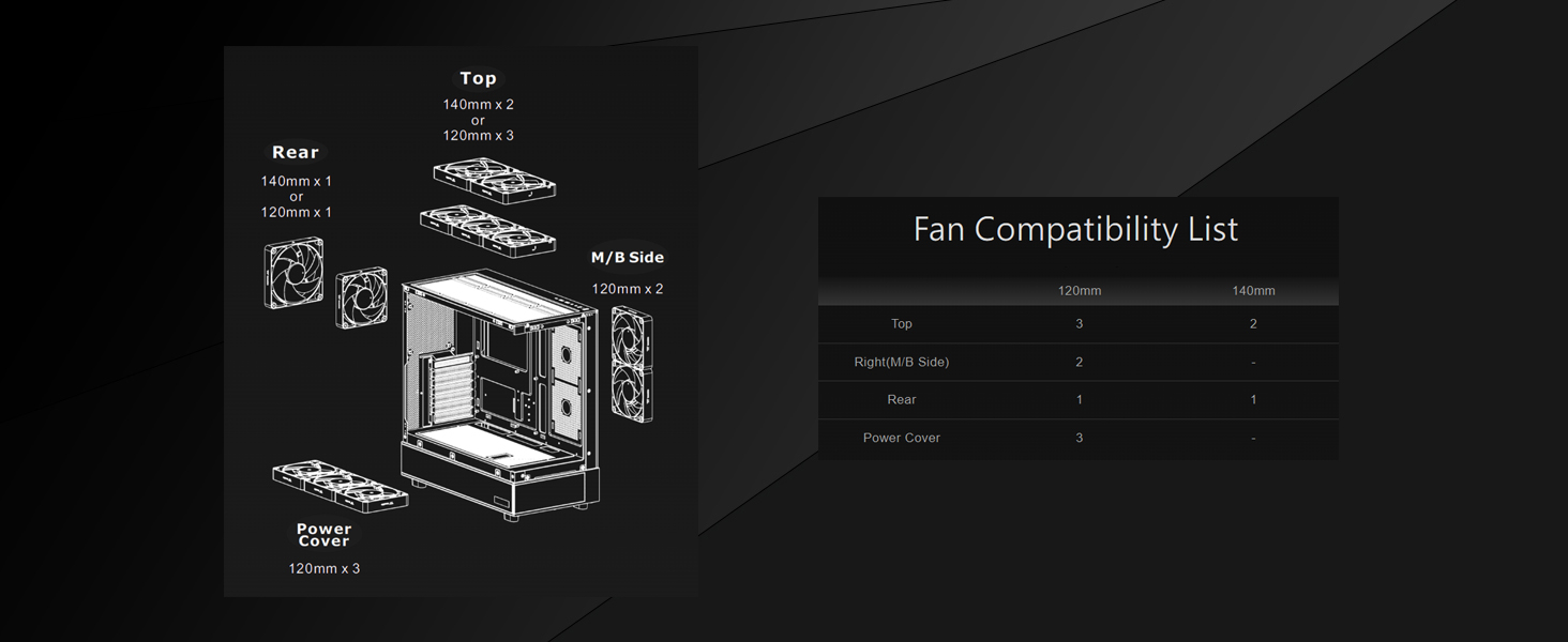 - For a better airflow, mid-tower structure supports up to 9 fan(s) with ample space to store hardware