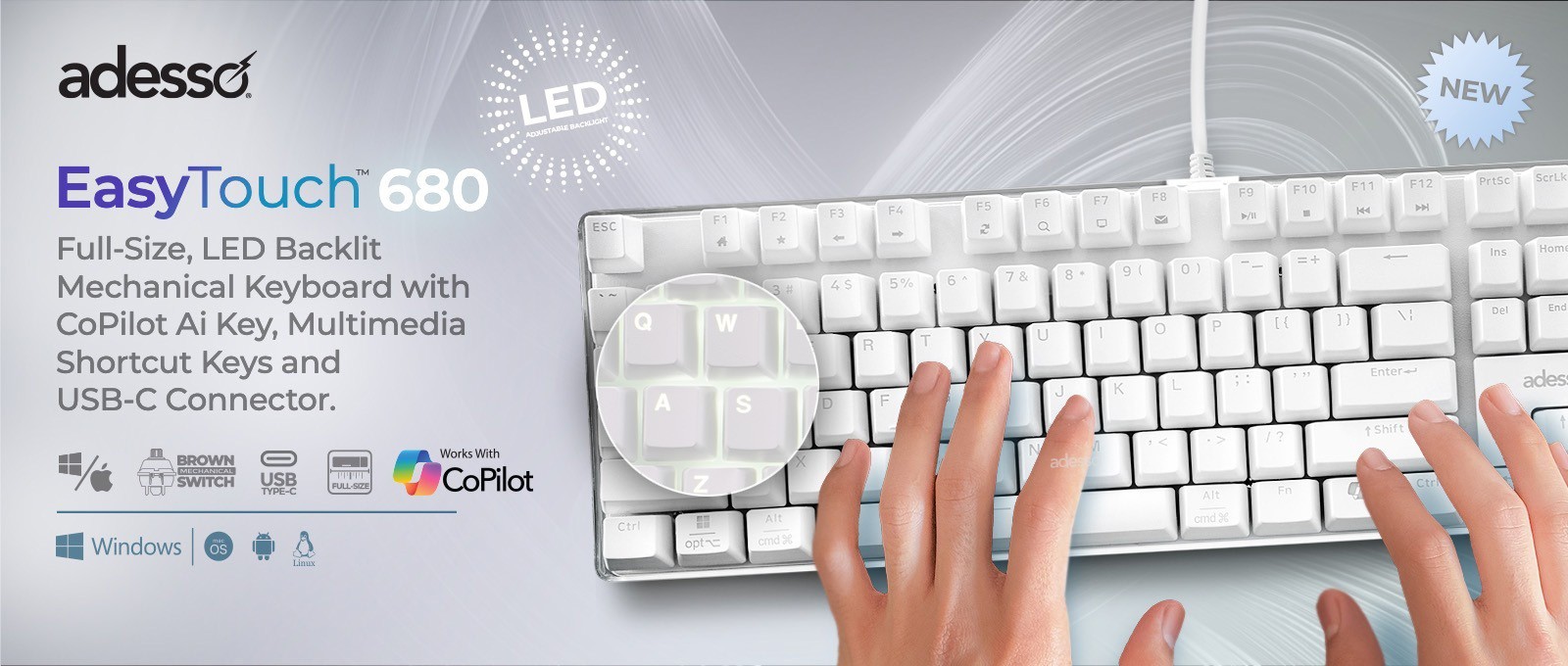 Maximize your keyboarding efficiency with the EasyTouch 680’s “brown” mechanical keys that offer superior tactility designed to last up to 50 million keystrokes.
