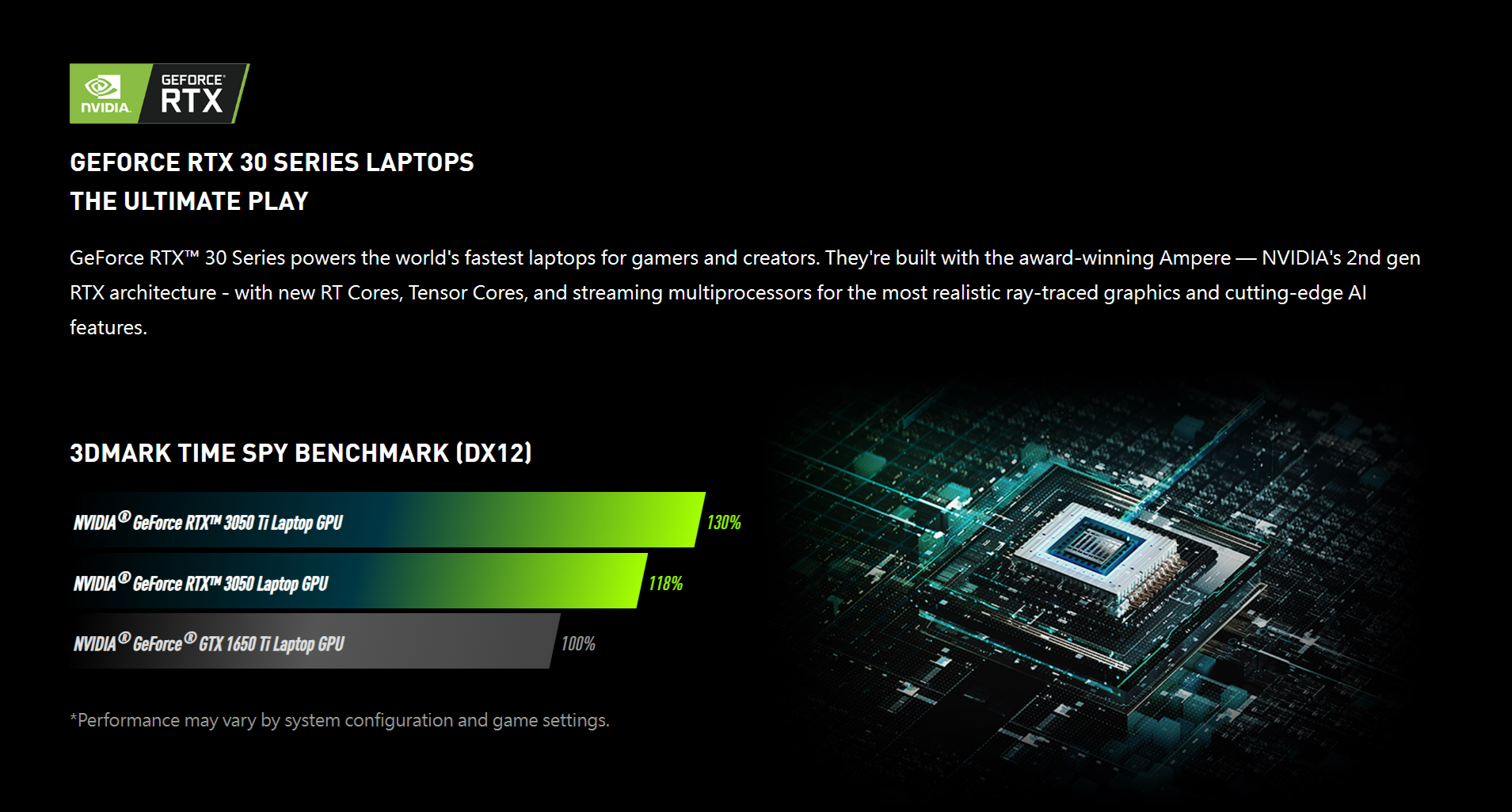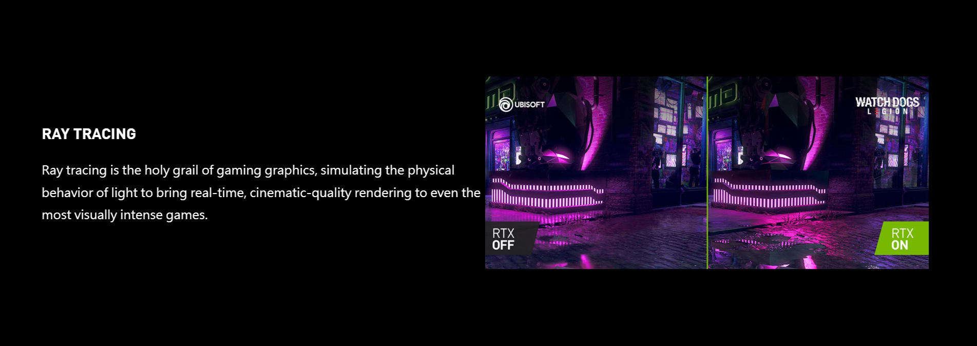 Experience today's biggest blockbusters like never before with the visual fidelity of real-rime ray tracing and the ultimate performance of AI-powered DLSS. RTX. It's On.