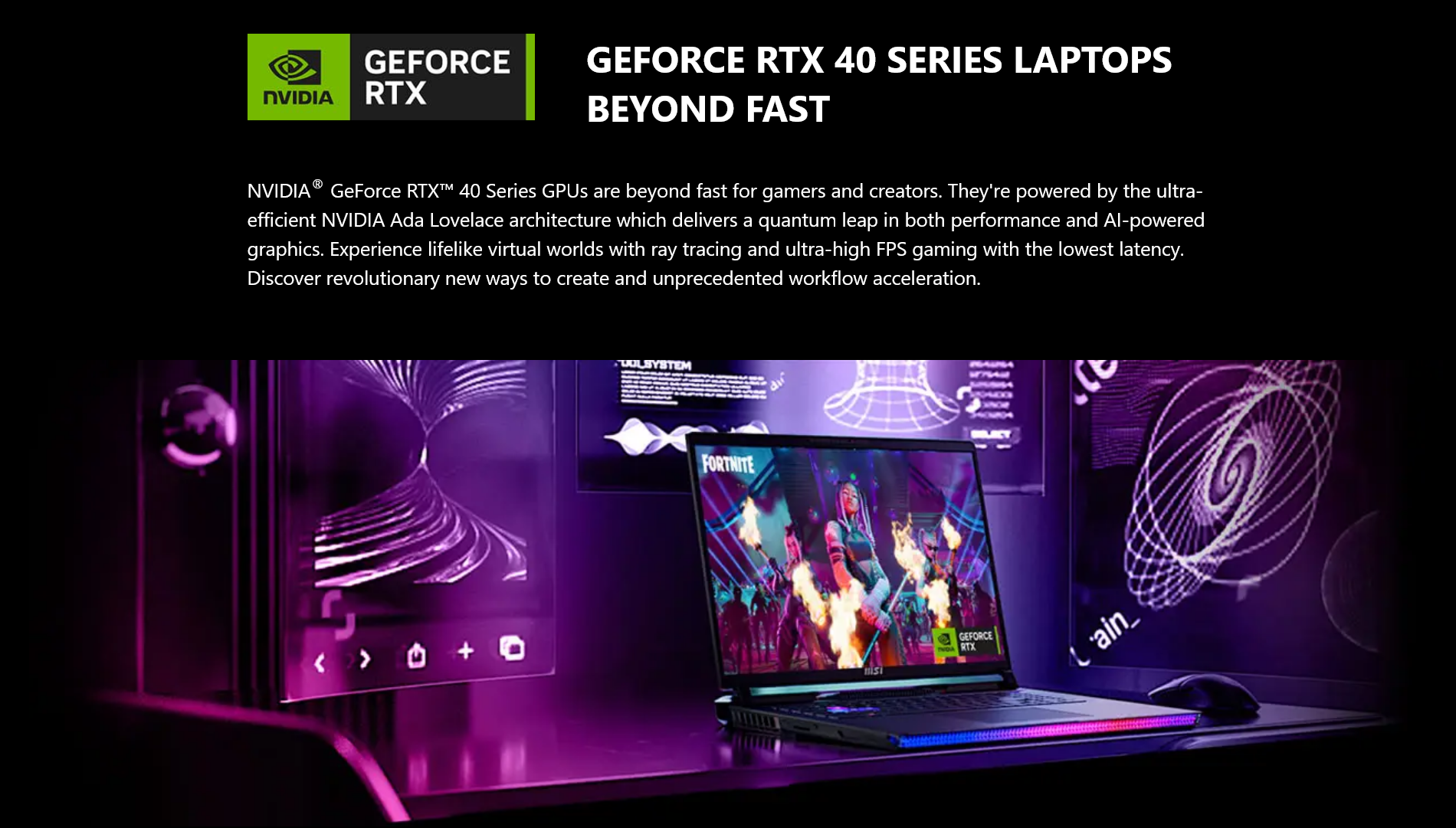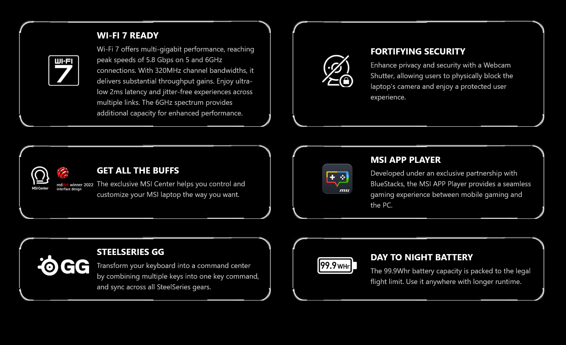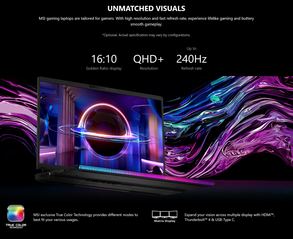 MSI Laptops accelerate applications faster and more efficient than ever before. They come standard with exclusive MSI Intelligent Technology that is capable of providing whole new AI features, taking automatic tuning to a whole new level. *MSI AI Engine & AI Artist will be provided through an early 2024 update. The interface and functionality may differ due to version change.