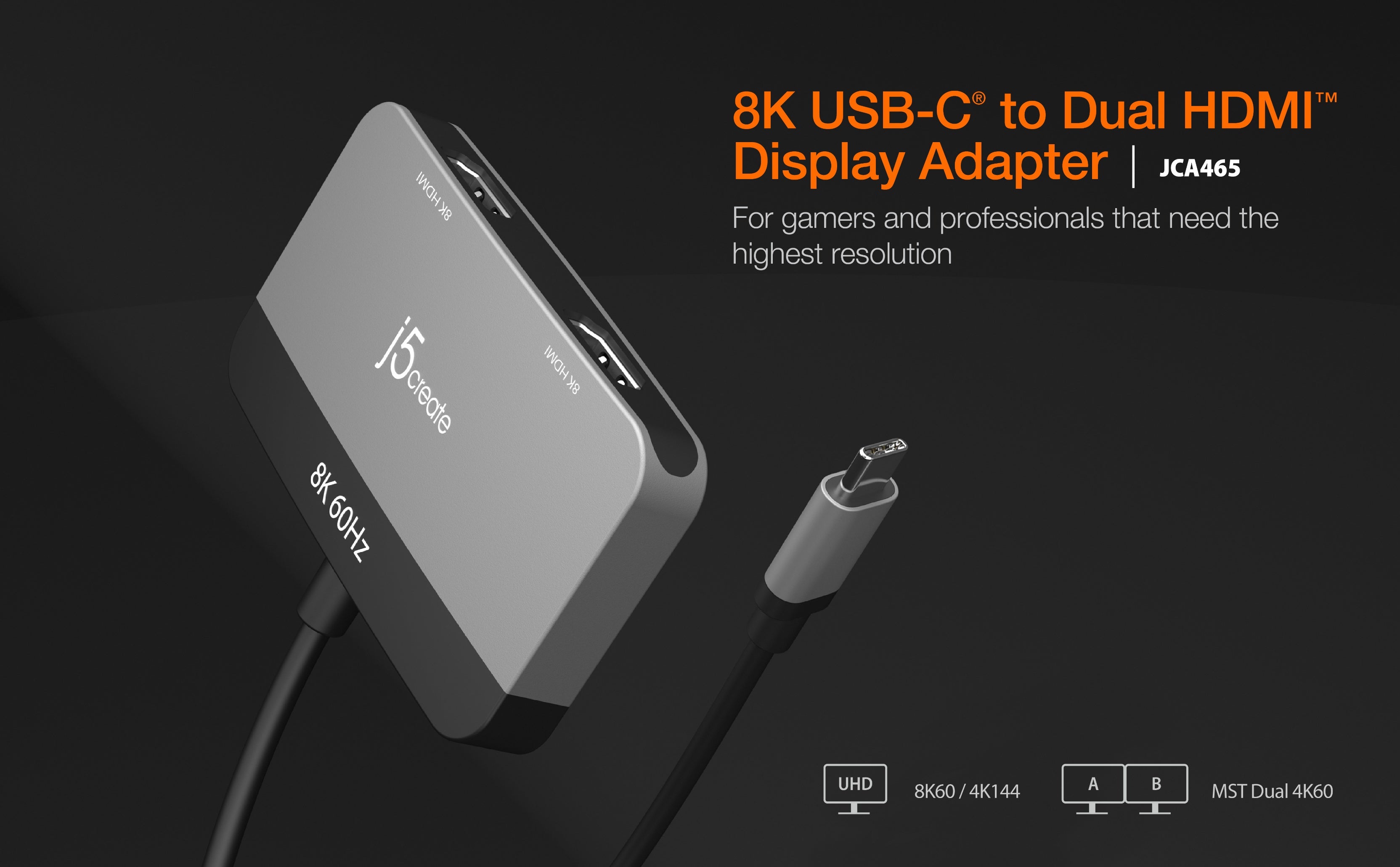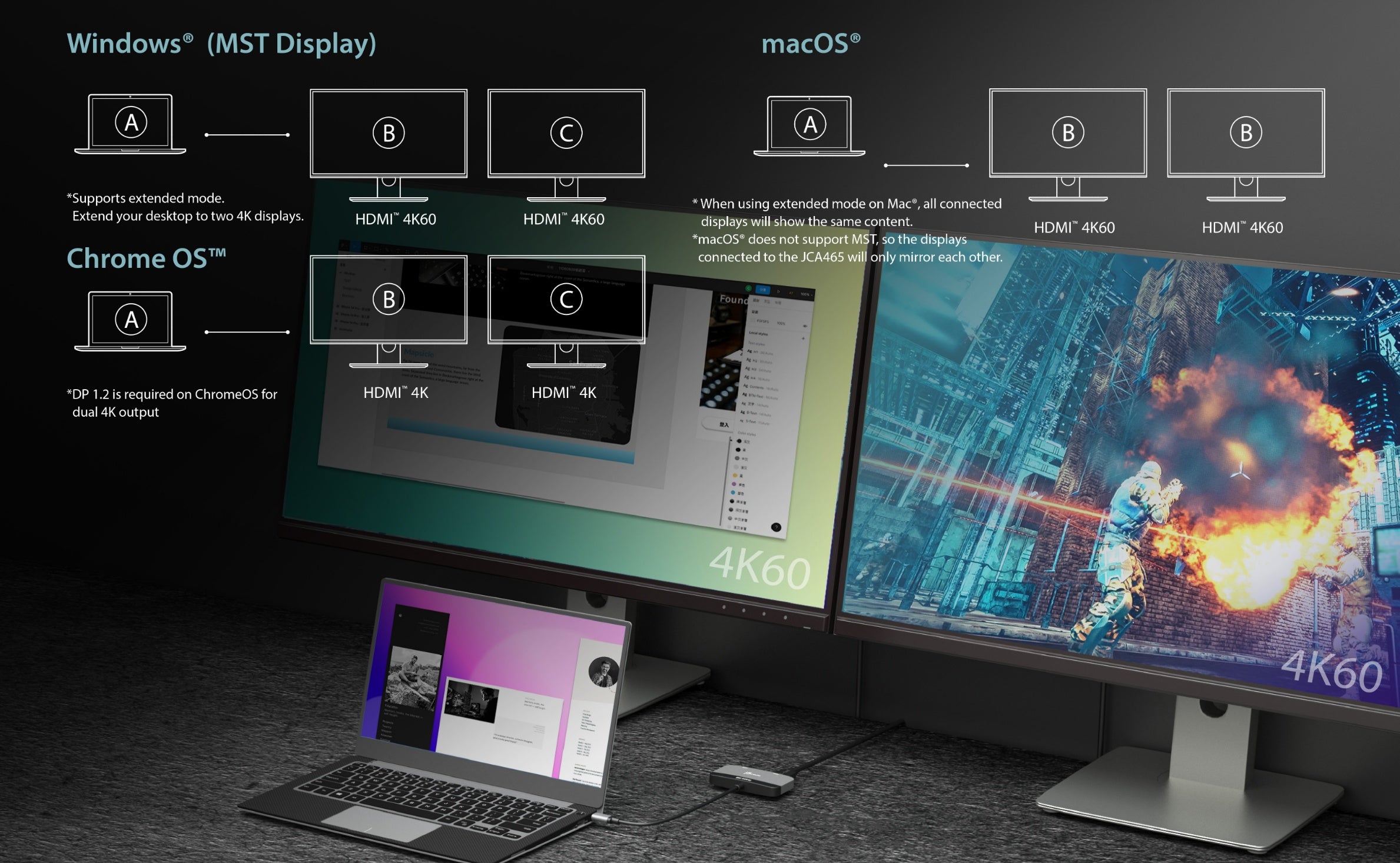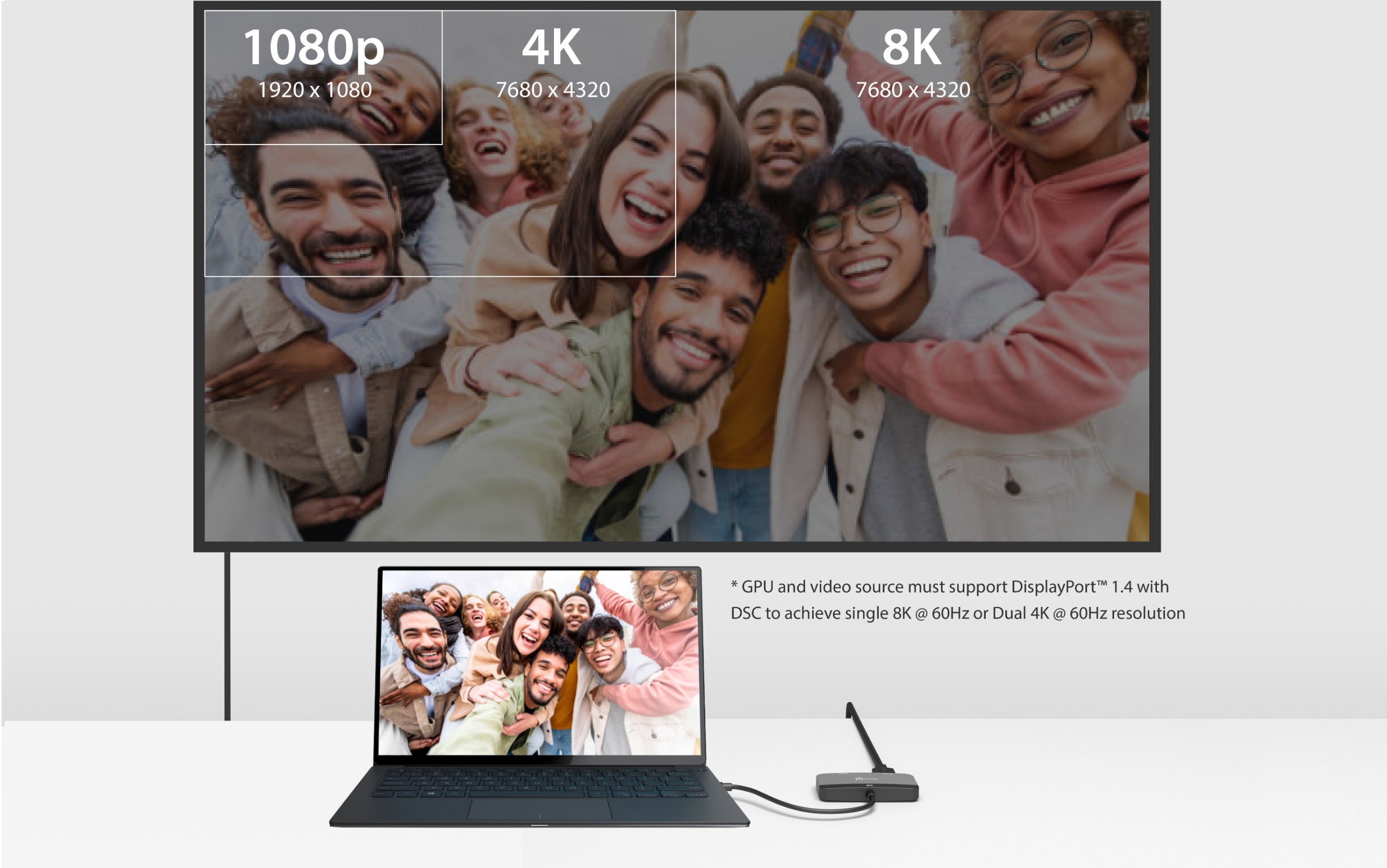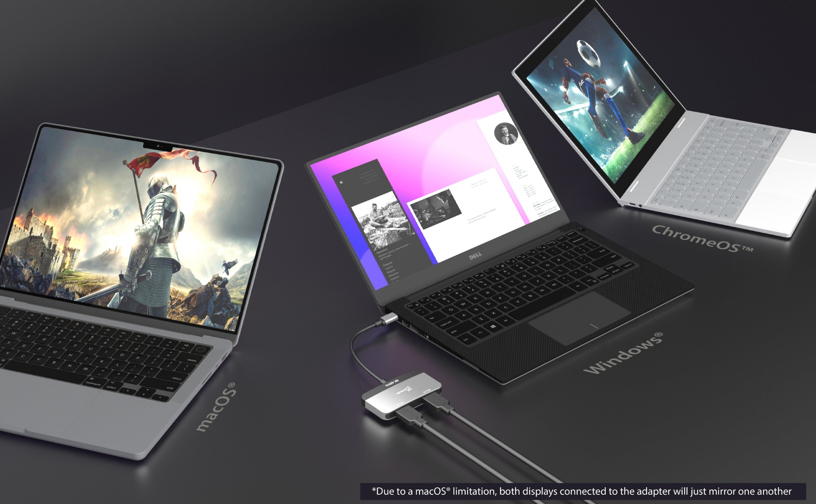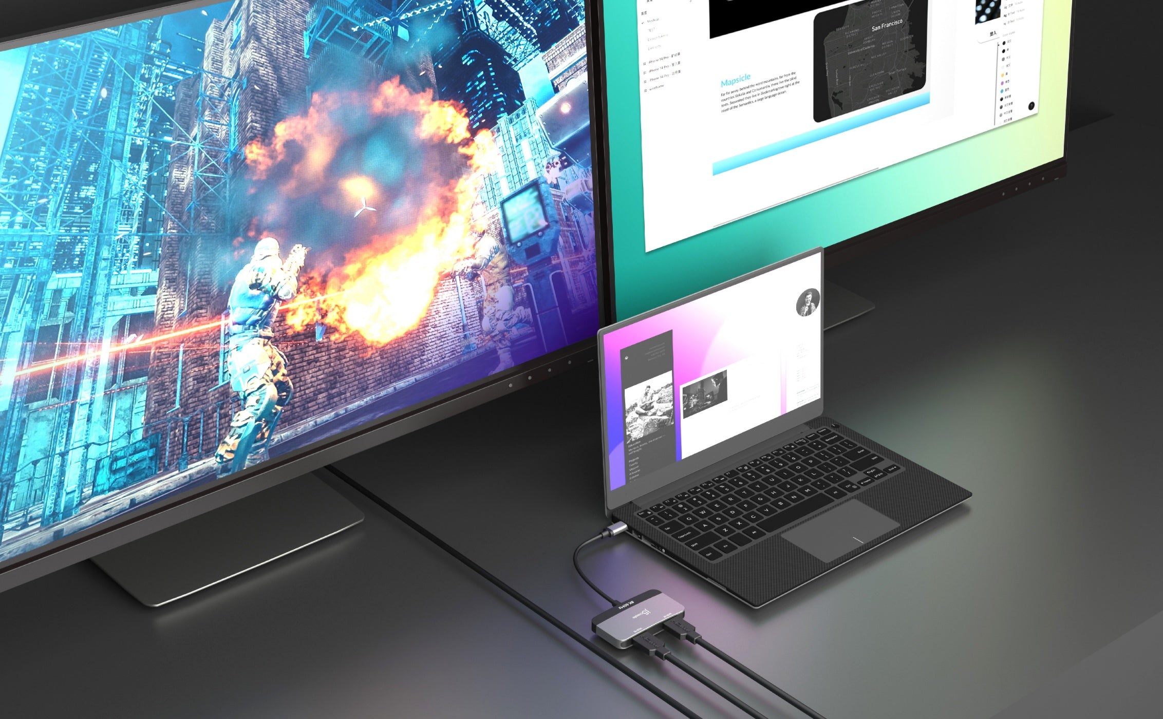 Create a dual 4K display workstation on compatible USB-C® laptops with DisplayPort™ 1.4 and Multi-Stream Transport (MST)
