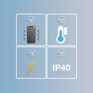 Rated for shock (EN 60068-2-27), freefall (EN 60068-2-32), and vibration (EN 60068-2-6)