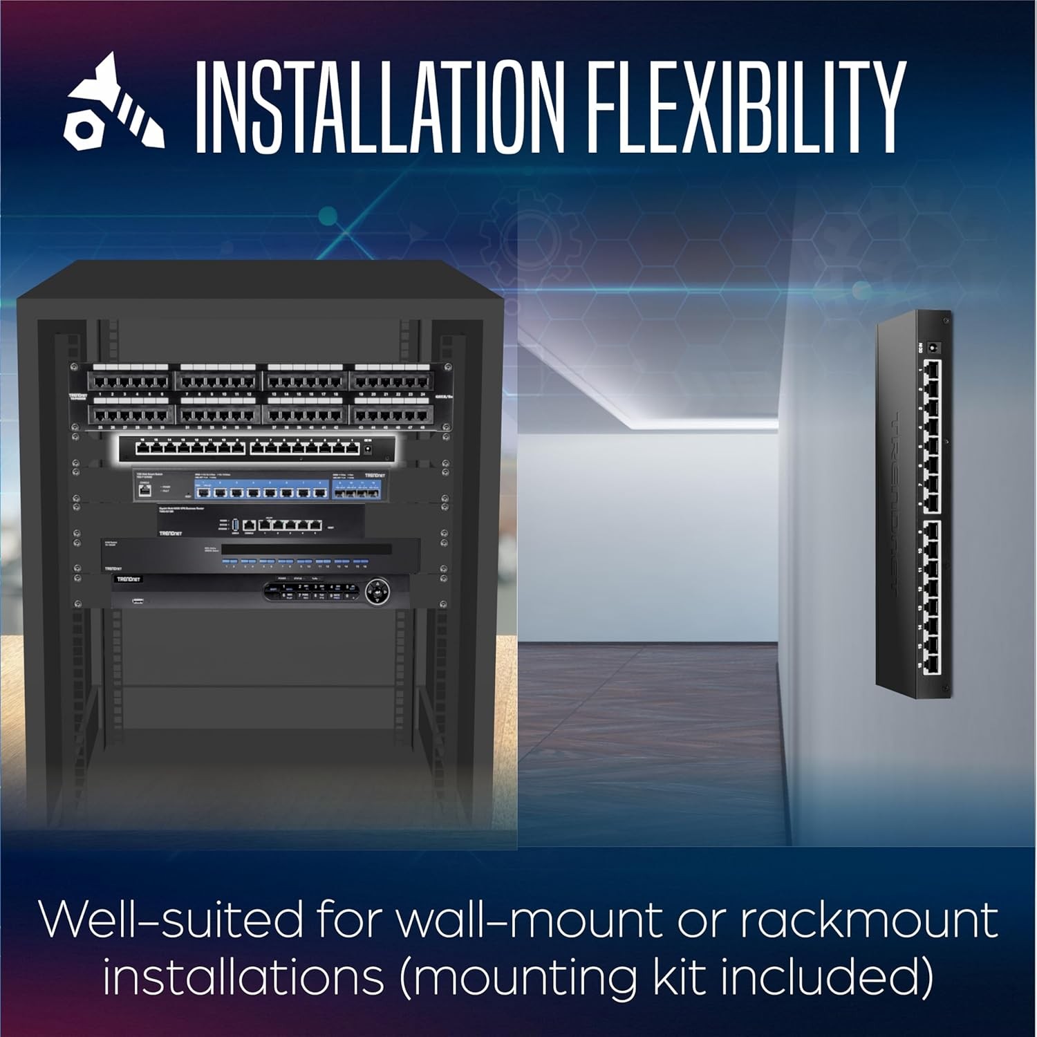 brackets are well-suited for wall mount or 19” 1U rack installations. TRENDnet’s reliable 2.5G switches are cost-effective solutions to
